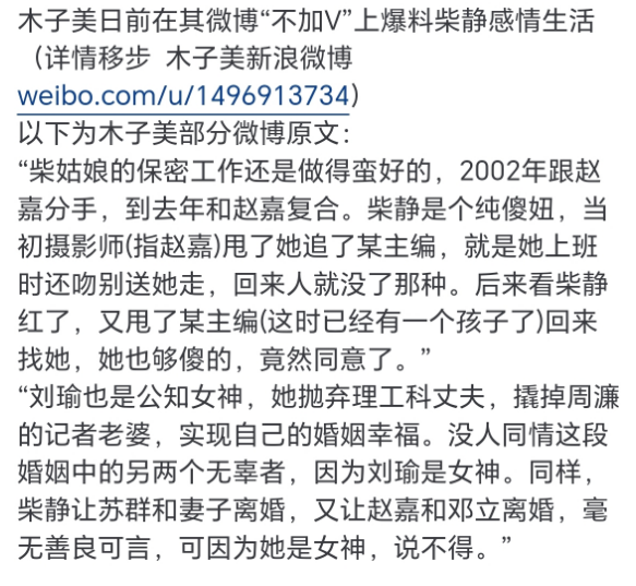 不懂就问,木子美和柴静多大的仇? 搜索了一下,2013年木子美就大爆柴静隐私(绝
