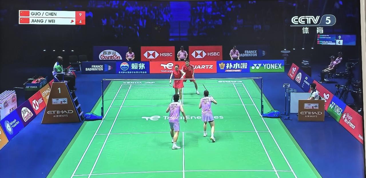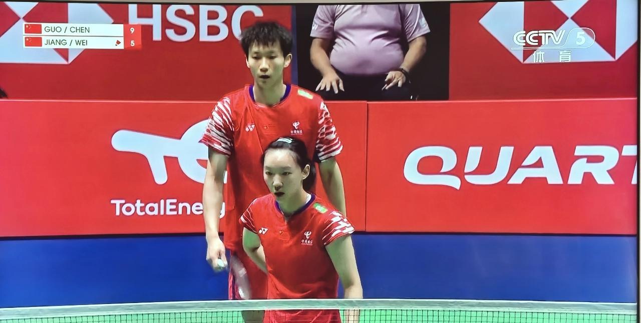 中国德比。直播混双半决赛,是在中国选手之间进行的一场德比,郭新娃/陈方卉对阵蒋振邦/魏雅欣。17:7,郭陈组合大比分领先,蒋魏组合有点跟不上节奏,18:10,蒋魏还是没有什么好办法,估计在考虑第2局,21:11,郭陈组合先胜第1局。