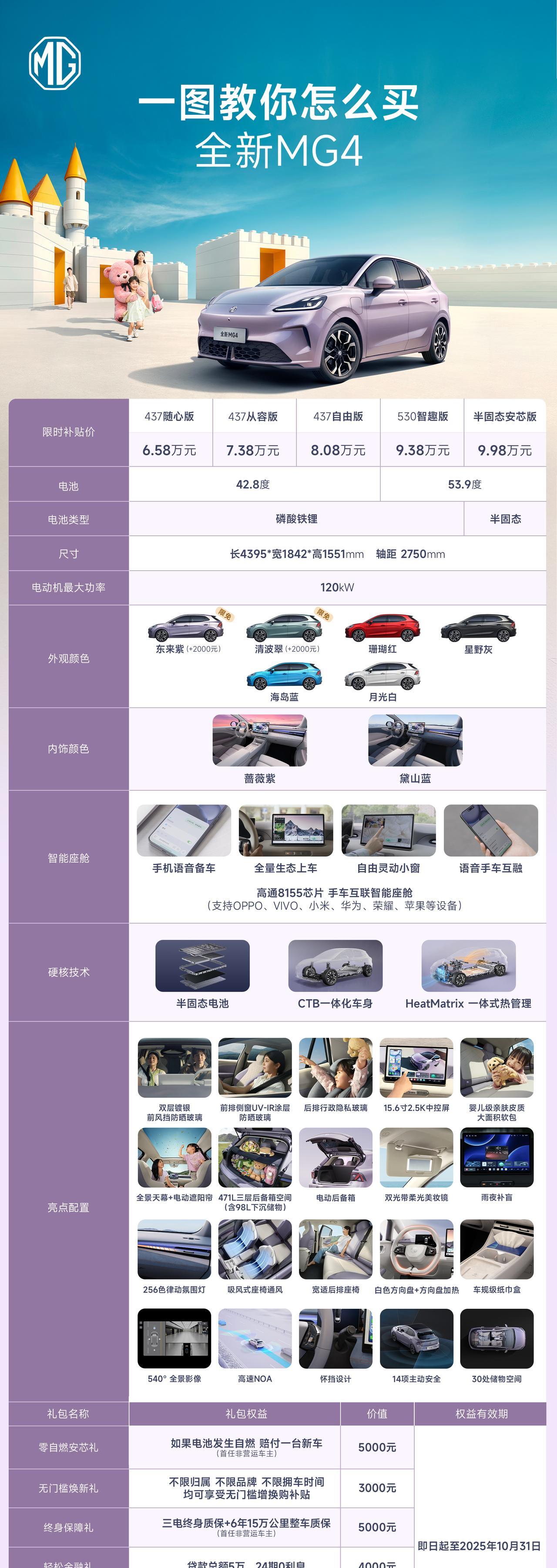 【MG把半固态电池干到10万内!果然新能源下半场才开始!】 固态电池的优势,是显而易见的,更安全,更耐低温,当然最大的缺点就是成本高。而上汽居然把固态电池干到了10万内!首款搭载半固态电池的MG4 9.98万! 这款车最大的优势就在于极寒天气下的补能和 能量释放再也不用担心了。 让东北地区,也可以放心的使用。 而入门的车型虽然没有半固态,但是6.58万起,绝对物超所值了!