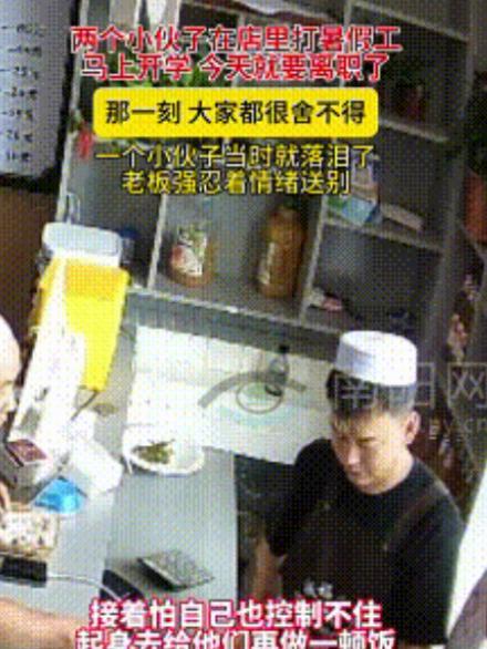 看哭了!甘肃,两个男孩放假期间在餐馆里打暑假工,眼瞅着马上要开学,他们只好向老板提出离职,就在他们最后一天工作的时候,两个男孩做出的举动让餐馆老板意想不到,而老板也是舍不得对方离开。 暑假的尾声,甘肃小城的一家小餐馆里,总是飘散着热气腾腾的饭香。 餐馆不大,门口挂着一块已经有些褪色的红色招牌,屋里摆放着十几张桌椅,简单却干净。店老板是个敦厚老实的人,平时说话不多,但对人很热情。 两个十七八岁的男孩,是邻村的同学。放暑假后,为了不给家里增添负担,他们相约出来找点零工干。正巧走进这家餐馆,抱着试一试的心态开口问:“老板,要不要人帮忙?” 店老板看着他们瘦瘦的模样,心想这两个孩子多半是想挣点学费。于是就点了点头:“要得,厨房打下手,洗洗菜端端盘子,你们能干就留下。” 就这样,两个男孩开始了暑假的打工生活。每天早晨,他们天不亮就骑着破旧的自行车赶来,帮老板搬货、整理菜架。 中午忙碌的时候,一个人端盘,一个人收拾桌子,常常汗流浃背,却从不叫苦。 店老板看在眼里,心里很是疼惜。他知道两个孩子都是农村出来的,家里条件不算好,但却懂事又肯干。 有时候忙得顾不上吃饭,店老板总是会招呼他们:“别光顾着干活,先去厨房盛碗饭,菜随便夹。” 孩子们起初还不好意思,推辞着说:“老板,我们自己带了干粮。”可店老板偏要他们吃热饭:“干粮能顶啥?来这儿干活就是咱店里的人,哪能饿着?” 渐渐地,孩子们跟老板相处得像一家人。午后的空档,店老板会坐在门口,点一根烟,和两个男孩聊聊学习,聊聊他们未来的打算。 一个男孩说,他想考上省城的大学,学计算机;另一个则笑笑,说自己成绩不算太好,想学个手艺,以后开个小店养家糊口。 老板听完,只是拍拍他们的肩膀:“不管走哪条路,好好干,都能有出息。” 时间过得很快,转眼一个多月过去了。暑假结束在即,两个男孩要回学校了。 那天,他们鼓起勇气,走到老板面前,说:“老板,我们过两天就要开学了,怕以后没时间来干活了……” 话音落下,气氛忽然变得有些沉重。店老板愣了下,点点头:“嗯,好啊,好好读书。以后有空再来坐坐。” 终于到了他们最后一个工作日。那天餐馆生意依旧很忙,但两个孩子心里酸涩,格外珍惜。 等到晚上散了客人,他们悄悄从角落里拎出两箱牛奶,笑嘻嘻地递到老板面前:“老板,这点东西不值钱,算是我们对你的心意。谢谢你对我们这么好。” 店老板一愣,连忙摆手:“哎呀,你们干啥?还买东西?钱都该留着上学用啊!”可两个孩子却坚持:“这是我们自己攒的钱,心意不大,但想让您收下。” 就在给他们结算工资的时候,其中一个男孩眼眶忽然红了,手里的钱都没接稳,掉在桌子上。他咬着嘴唇不说话,眼泪却“啪嗒啪嗒”掉了下来。餐馆里很安静,只听见墙上老旧挂钟的滴答声。 店老板见状,心里一紧。他知道,这泪水不是因为钱,而是因为不舍。那一瞬间,他差点也要红了眼眶。 但他是大人,不想让孩子们更难过,于是赶紧转移话题:“来来来,别哭了,喝口水。”他从旁边冰柜里拿出两瓶矿泉水,塞到他们手里,“先润润嗓子。” 可手一抖,他还是感觉自己鼻子酸得厉害,怕情绪失控,店老板索性转身走进厨房。他抹了把眼角,深吸一口气,然后喊了一声:“你们等着,我再给你们做顿饭!” 孩子们愣住了:“老板,不用了,我们都吃过了。”但厨房里已经响起了切菜声,锅里的油哧啦作响。 店老板一边忙活,一边嘟囔:“最后一天了,我不给你们做顿像样的饭,以后心里不踏实。” 不到半个小时,热气腾腾的菜端上了桌子。他招呼道:“来,吃吧,就当咱们一家人聚聚。” 两个男孩再也忍不住,低下头,眼泪扑簌簌往下掉。一个边抹眼泪边笑:“老板,您对我们太好了。” 店老板摆了摆手,语气却有些哽咽:“傻孩子,出来干活不容易,你们懂事又勤快,将来肯定都有好出息。