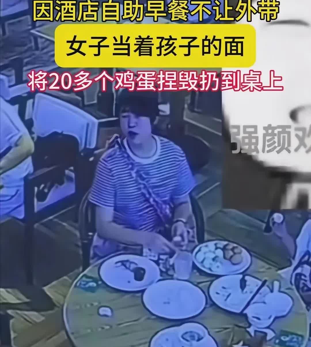 西安酒店捏蛋姐已社会性死亡, 网友们都怒不可遏指责她, 可现实生活中她并不怕, 据认识她的人说她在现实生活中就是这样的人, 非常霸道不讲理,邻居都非常讨厌她, 本来酒店带自助早餐是好事, 可这女子居然装作不懂规矩, 非要将鸡蛋打包带走, 被服务员提醒后, 怒火中烧本着得不到就毁灭的歪理, 一下把剩下盘子的二十个鸡蛋全部拿来 每一个都剥开故意捏碎扔在桌子上, 真的素质太低浪费粮食, 还是当着五六岁孩子的面这样做 估计事后还得意洋洋告诉孩子遇到这种服务员就这样治, 真心希望孩子不要被这样的妈带坏了, 毕竟有老话在先有什么样的妈就有什么样的孩子, 在孩子面前这样做真的不是一个合格的母亲, 鸡蛋是没有那么贵, 但是浪费就是可耻! 大家对于西安酒店捏蛋姐这样浪费鸡蛋的行为怎么看? (视频来源新闻)