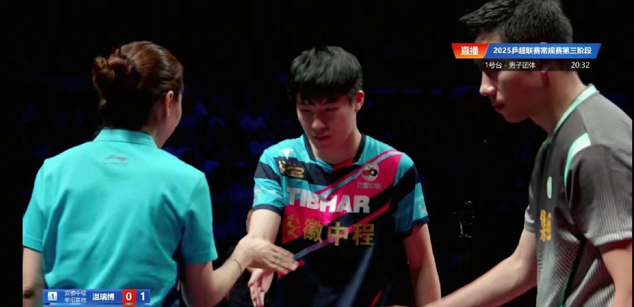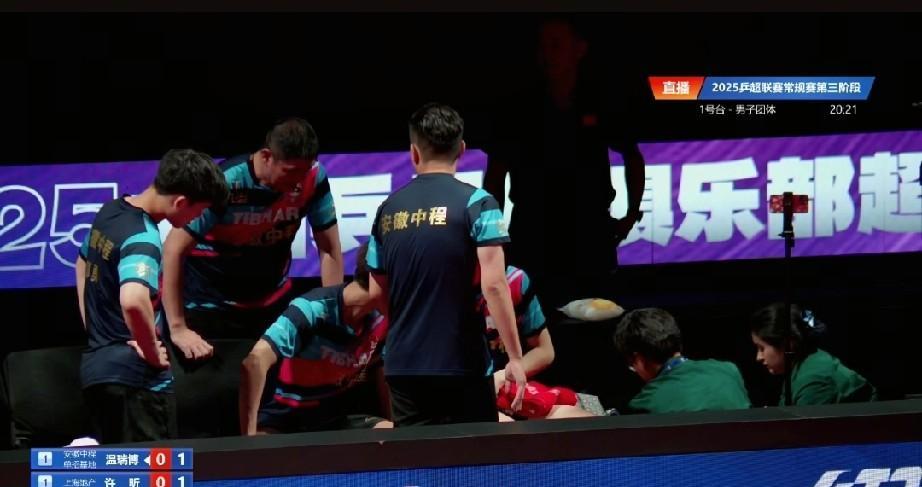 温瑞博因为救球受伤了。 今晚大家还是很期待温瑞博和许昕的这场比赛,他俩打第三盘,前面两盘比赛安徽中程1-1上海地产。第三盘比赛一开始,刚打了两个球,温瑞博就受伤了,这个球许昕放高球后突然吸短,温瑞博跑过来救球时崴了脚,腿也拉伤了,然后申请了医疗暂停,医疗暂停过后温瑞博还又上场了。 在场上看到他就跑动不开,应该腿比较疼,许昕比分7:1时,温瑞博先和中程的教练说自己腿和脚疼。然后又过去找裁判说,后面就结束比赛,和许昕握手了,这一盘算许昕赢了。 这次比赛,樊振东去国外打球,他没有来打乒超,所以许昕还是要上场的,许昕的实力也是比较厚实的。现在上海地产是2-1安徽中程,第四盘比赛牛冠凯对周恺,都加油吧!希望每一位运动员都健康完赛,接下来温瑞博还要打澳门冠军赛,希望小温早日康复!