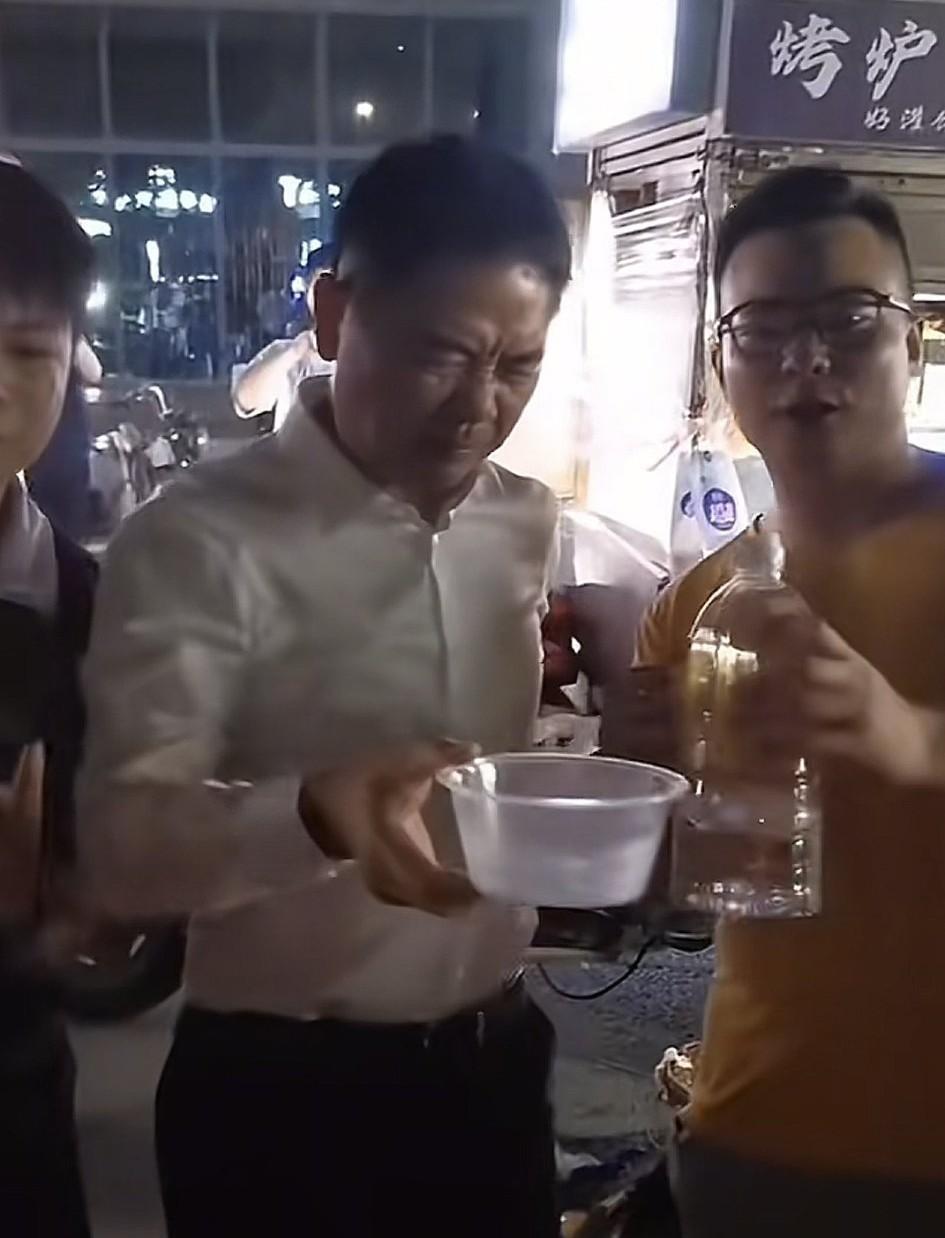 也不知道酒那么难喝,大家怎么那么喜欢喝,女人真的理解不了,你看刘强东在老家地摊上喝啤酒,也是十分的豪爽,拿着一次性碗喝,根本不带偷奸耍滑的,大半碗啤酒直接下肚,也没有养鱼,喝完酒后,不知道是不是因为啤酒太凉,还是太辣,喝完也是紧皱眉头,下次建议常温的喝冰的对半掺,应该就没有那么凉了。