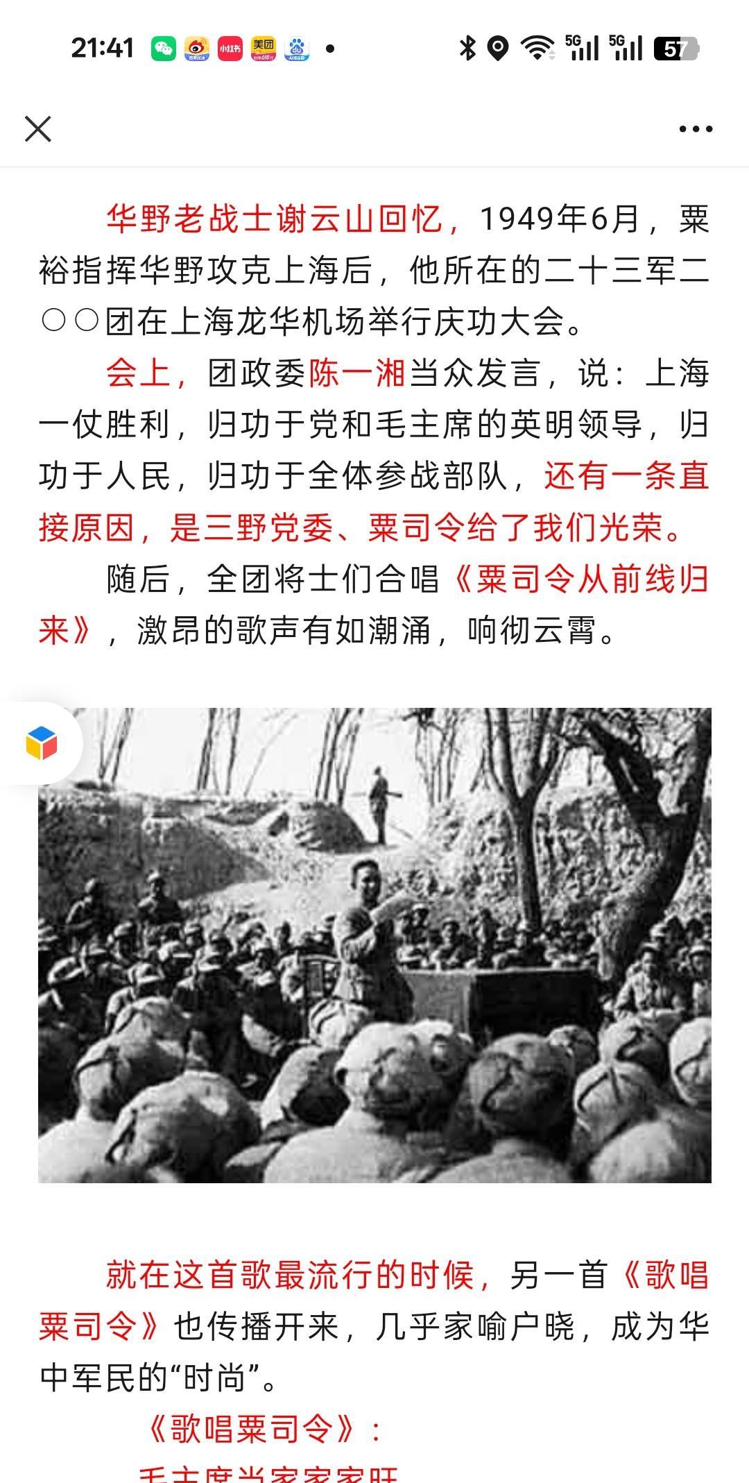#粟裕#战争年代歌唱粟裕司令员的三首歌曲。林司令命令往下传歌曲很有名。在新四军