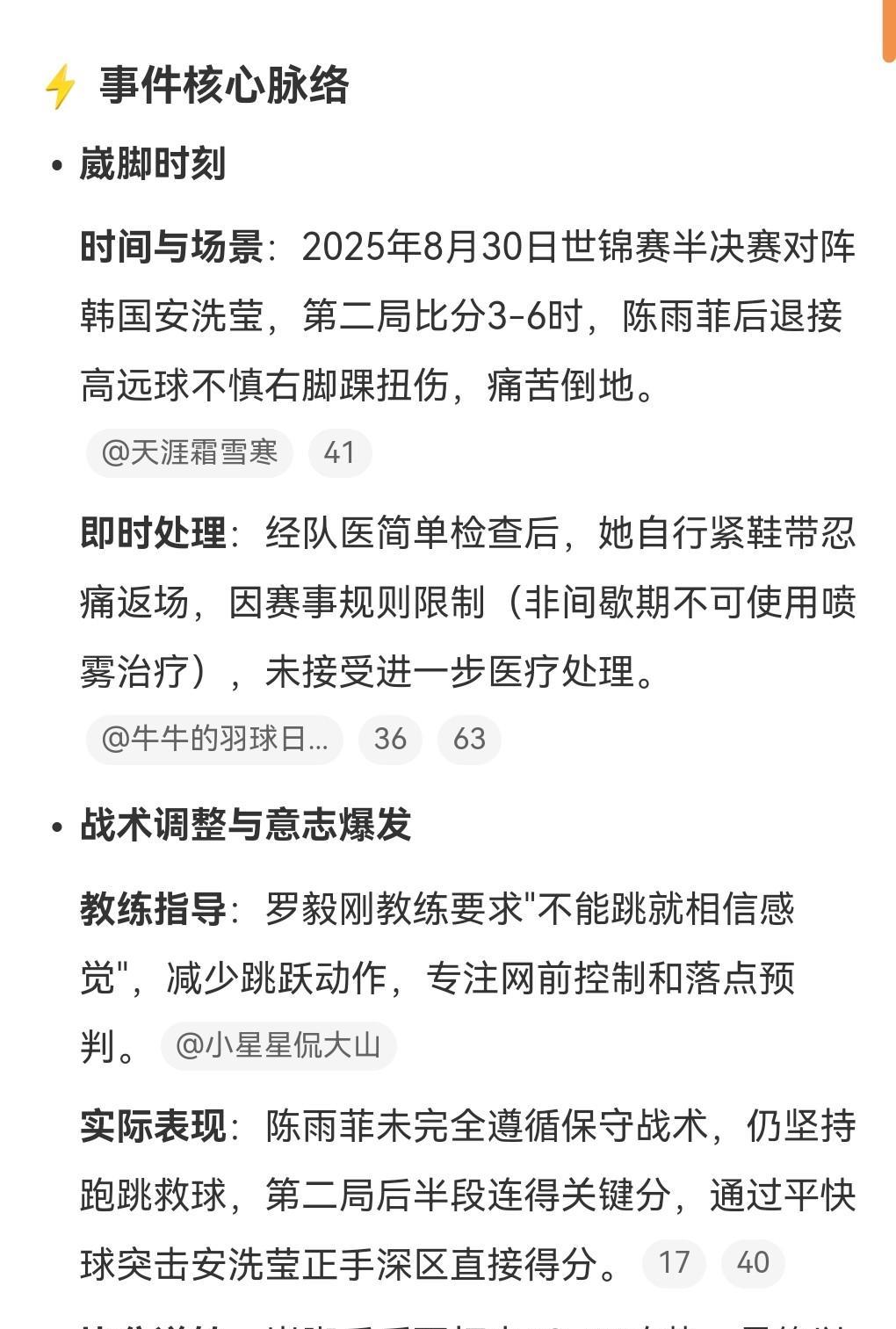 这真的是太不容易了。 8月30日,陈雨菲在和安洗莹的比赛中,把脚给崴了一下。 想