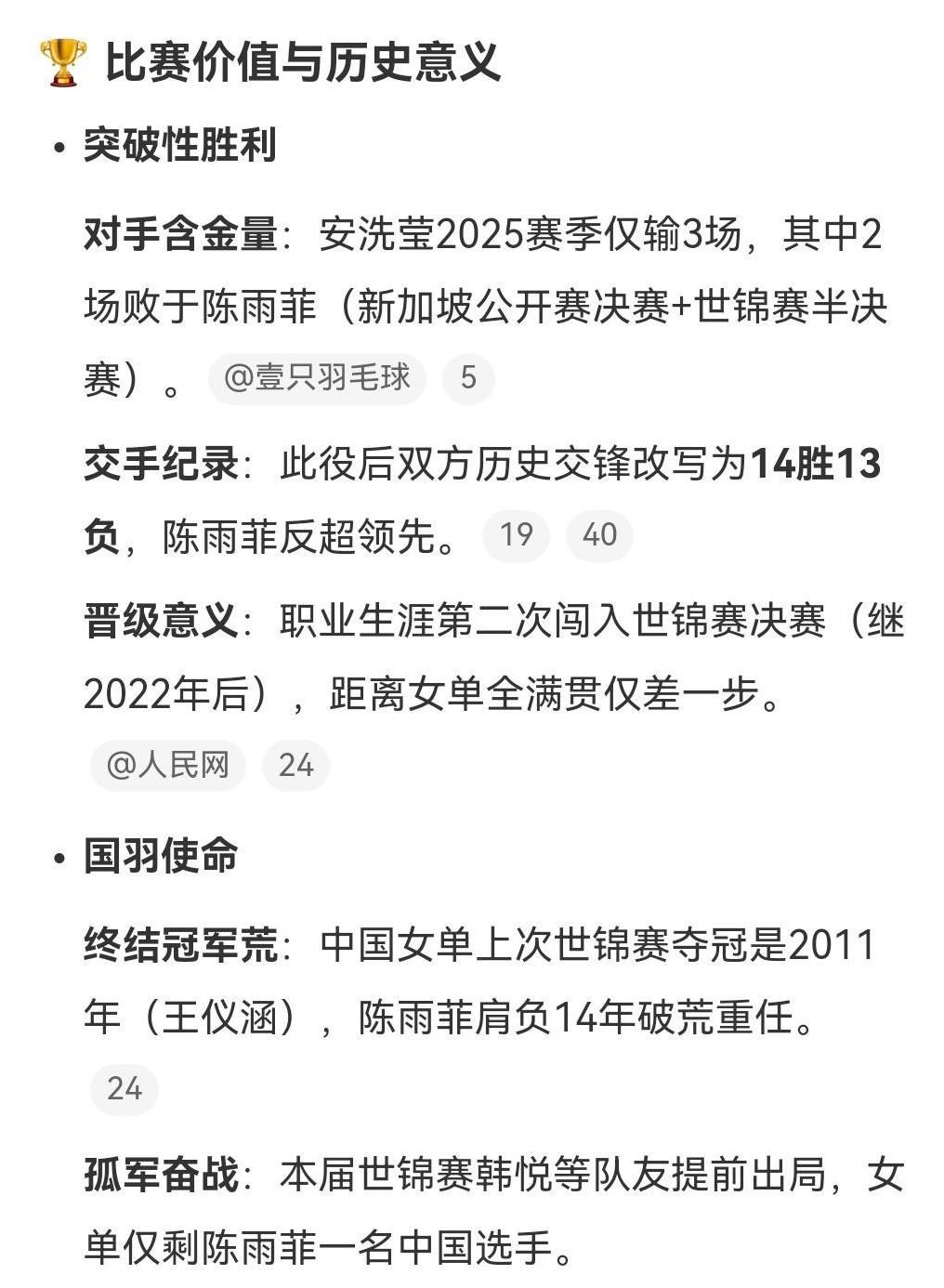 这真的是太不容易了。 8月30日,陈雨菲在和安洗莹的比赛中,把脚给崴了一下。 想不到的就是在这样艰苦的条件下,竟然还赢得了比赛。 这真的是一种锲而不舍的精神,非常的打动人心。 希望她的脚伤赶快好,最终拿下冠军。 这个冠军相当的重要,无论是对她还是对中国队来说。#陈雨菲崴脚后坚持比赛#