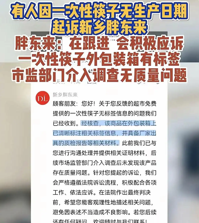 胖东来那筷子箱子上,质检报告、生产信息啥都有,市场监管部门查了也说没问题,这人非要盯着拆出来的单根筷子较劲。