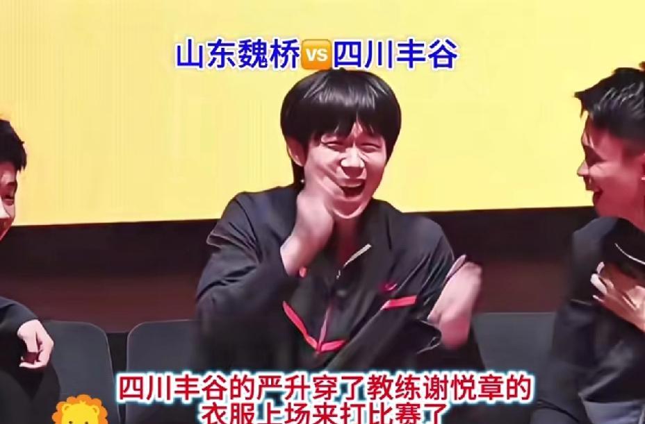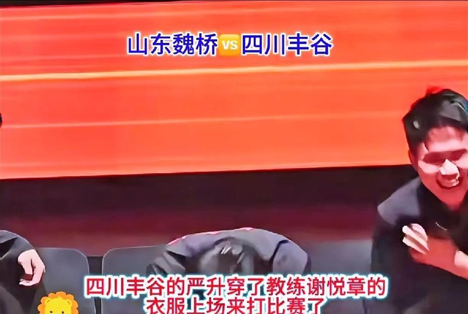 看热闹不嫌事大的出勤老师, 笑得“褶子”都出来了, 跟小媳妇准备“骂街”前的动作一样样的。 乒超联赛山东魏桥对战四川丰谷, 男双一上来刚打算热身, 裁判就发现四川丰谷严升穿错衣服了, 他穿了教练谢悦章的教练服来打比赛了。 这一幕可把坐在场外的王楚钦笑晕了, 跟左边的周启豪蛐蛐完, 又跟右边的草莓熊蛐蛐, 完了之后自己捂着脸都快笑抽抽了。 有个网友的比喻太恰当不过了, 出勤老师那一拍手的动作, 把小媳妇准备“骂街”拍手的动作, 体现得淋漓尽致。 终于当了回吃瓜群众, 这下全都知道大头蛐蛐对手穿错衣服了。 (图片源自于网络) #晒图笔记大赛#