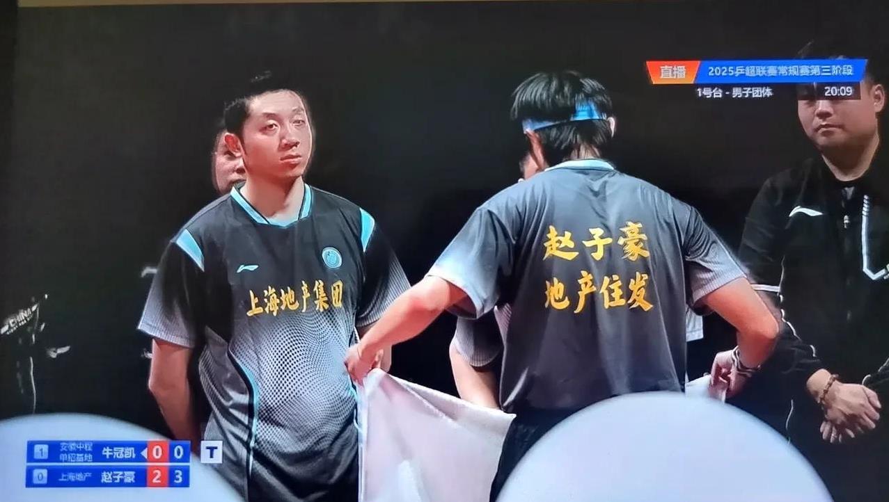 赵子豪,上海地产男乒一号人物。 樊振东在德国专心参赛,赵子豪临危受命,在本次全国团体赛中扛起了大旗。 小赵表现出色,先是3比0击败牛冠凯,为上海地产扳回一分。随后又3比0战胜安徽中程老将郭勇,个人独得两分,助力上海地产3比2战胜对手,成功为樊振东分担压力。 说起赵子豪,在本赛季第二阶段表现极其出色,先后击败林诗栋、徐海东、王阳等国乒高手,球迷都赞他“闪耀洛杉矶”。 小赵的进步有目共睹,不仅技术有了很大提升,就连他的心态也变得成熟稳重了很多。 这与他平日里的刻苦训练,以及与樊振东的师兄弟交流分不开。