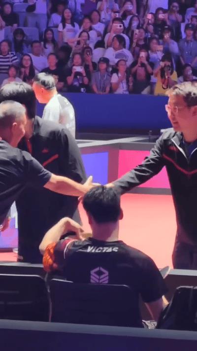孙闻被王楚钦和林昀儒打崩溃,当场怒摔球拍! 孙闻这次真的被打恼了!跟林昀儒打完输掉比赛后,接着就把球拍狠狠地摔在地上,然后跟主裁握手估计刚碰到指尖,而且还扭着头! 到副裁这里也是这样蜻蜓点水一下!接着去到魏桥这边,也是扭着击掌完!然后拾起球拍回去了! 四川丰谷这边教练和球员原地未动,魏桥的教练和运动员跑过来挨个握手,王楚钦还热地找了坐在那一动不动的孙闻招呼了一下,好像安慰了一句“加油啊!” 分析孙闻为啥这样恼怒呢?有人说两场比赛两种死法,一场是输也输不掉,一场是赢也赢不了! 跟王楚钦打到17:15被当练发球手,跟林昀儒打眼看着赢了最后一局9:6被追分输掉比赛。 最后看大圣出来招呼了一下,这四川丰谷的教练员团队的格局真是有点那啥了!