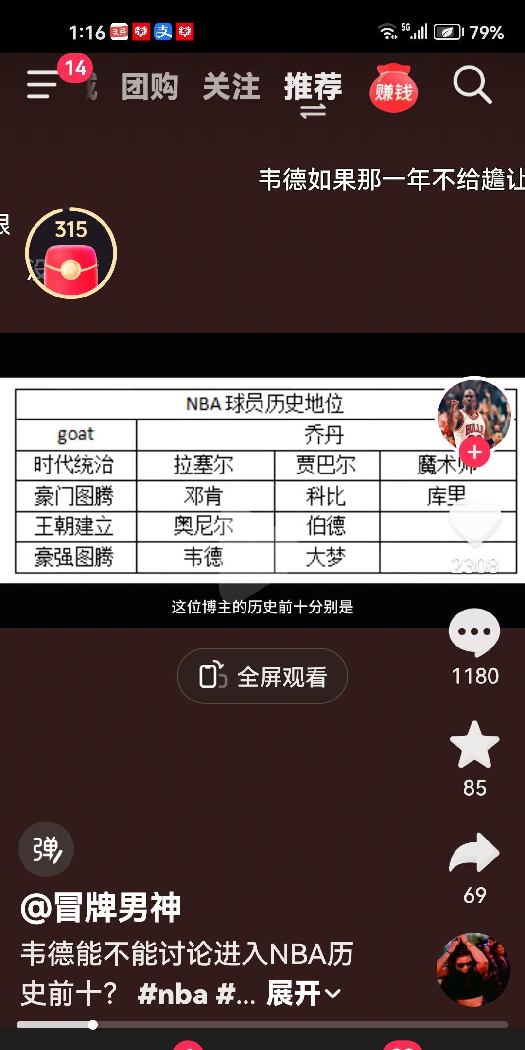 惊掉下巴!挤掉铁哥们詹姆斯,韦德首进入历史前十! 有一位博主晒出来了他心目中的N