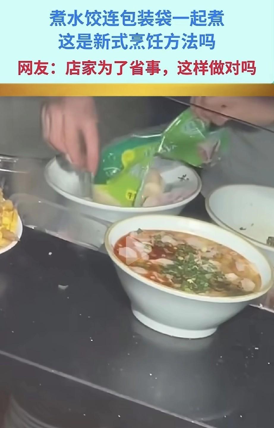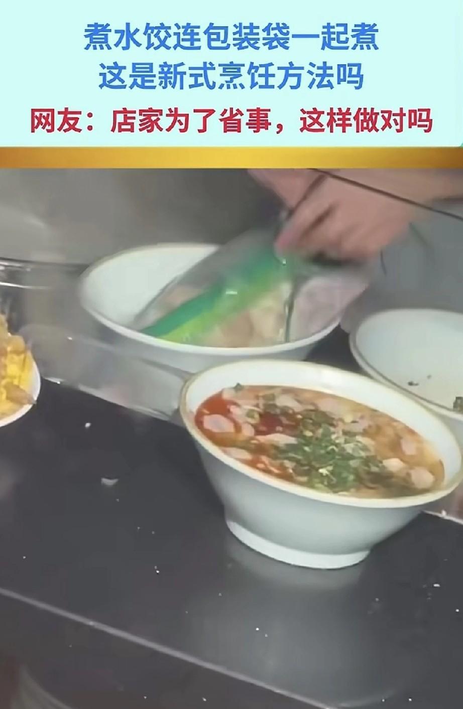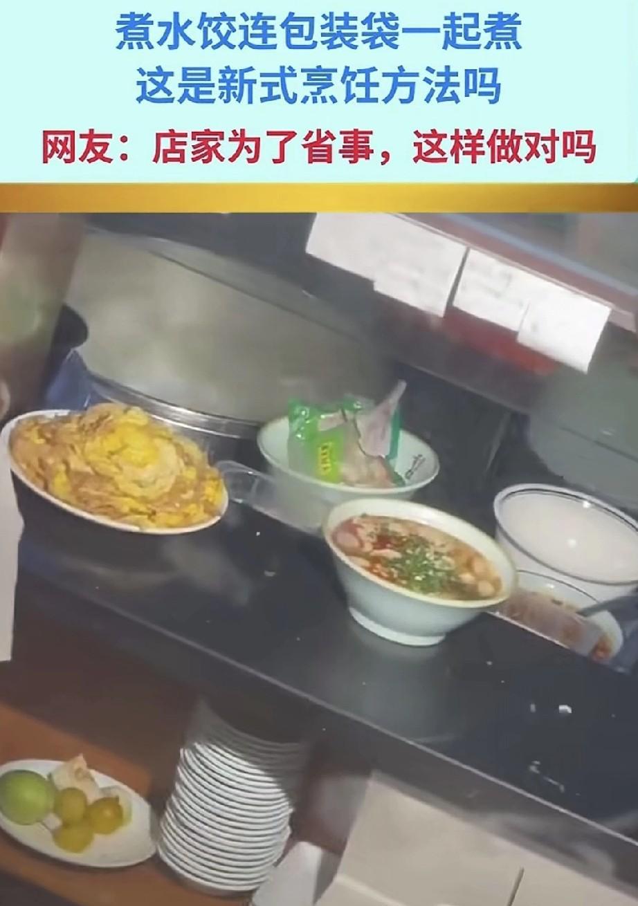 煮水饺时连外包装一起丢进装着面条的锅里煮,这分明是为了偷懒。毕竟锅里还煮着面条,要是撕开包装和面条一起煮,捞饺子可就麻烦了。这倒好,不光塑料袋在锅里煮,还有面条,真正的一锅烩啊。 真心劝大家,别在外面吃水饺。真的,我跟你说,这事儿可恶心了。古人说得好:“好肉不做馅”。尤其是外卖里那些打着“手工水饺”旗号的,全都是速冻的,谁有空给你现包啊。 古人云,病从口入。咱们小老百姓,能不在外面吃就尽量别在外面吃。做食品行业不讲卫生,那就是自砸饭碗。现在有多少家庭不缺钱,却愿意回家自己做饭吃?还不是怕外面的东西不卫生。特别是有了小孩之后,更不敢在外面吃了。这些做餐饮的,把聪明用错地方喽。