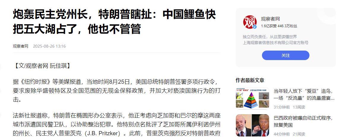 中国鲤鱼在美国疯长成“猪”,在中国却不够吃?背后真相把人看笑了。 美国的“外来物种灾难榜”上,中国鲤鱼绝对是顶流“麻烦制造者”,本该当“河道清洁工” 的鱼,繁殖得比开了挂还快,连特朗普都拿它吐槽民主党州长“不作为”! 可谁不觉得离谱:同样是鲤鱼,在美国能长到几十公斤跟小猪似的,在咱中国咋就不够吃?这全是美国自己闹的笑话! 鲤鱼在美国能这么 “嚣张”,核心就是美国人 “不吃还不折腾”,纯属自找的!他们眼里淡水鱼就带 “脏、有土腥味” 的偏见,说白了就是没挨过饿,不知道有多香!鲤鱼刺多咋了? 咱剔刺、红烧、做鱼丸的本事多厉害,可他们学都不愿学,还瞎担心有污染物。 更荒唐的是,这鱼在美国被归成 “有害野生动物”,运一下都要许可证,根本没人弄上餐桌 —— 没人捞、没人吃,可不就等着长肥? 再看美国当初引进鲤鱼的操作,纯属瞎折腾!上世纪 60 年代搞重工业,化肥、污水直接往河里倒,水里养分太多,藻类疯长,水臭得熏人,养殖业亏惨了。 一开始他们想的招儿特蠢:撒化学药剂杀藻,结果藻死了,本地鱼虾也团灭,生态崩了一半! 没辙了才用生物法子,把吃水草、浮游生物的草鱼、鲢鱼请过去。刚开始还得意,可压根没算到这些鲤鱼适应力逆天,下崽能下上百万。 后来闹洪水、养殖设施破了堤,鱼全跑河里了 —— 密西西比河网四通八达,又没天敌,吃的管够,鲤鱼直接成 “水下军团”,挤得本地鱼没活路,几十年就泛滥了。 你再看咱中国,野生鲤鱼早被吃成养殖的了!糖醋、熬汤、做火锅,做法多到数不清,刚长大点就端上桌,哪有机会长几十公斤? 美国倒好,放着好食材不用,只会政客互相甩锅,连请中国捕鱼队、把鲤鱼运到亚洲消化的法子都想不到。 说到底,不是鲤鱼太能闹,是美国生态治理没长脑子,引进物种不想后果,出了问题只会怪来怪去。 这一手好牌打得稀烂,最后看着鲤鱼在河里称王称霸,纯属活该!