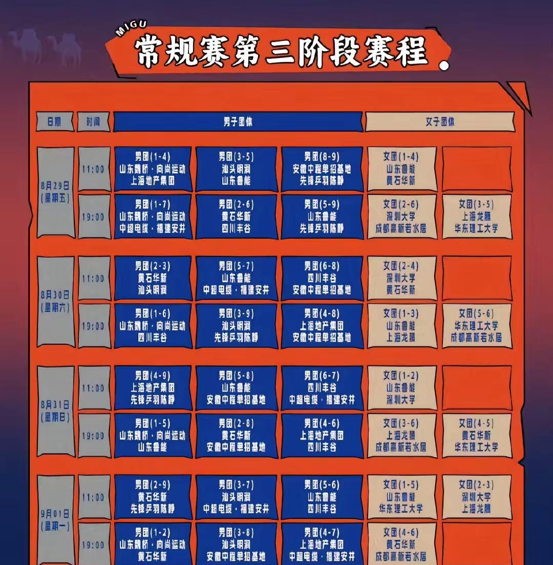 乒超联赛2025第三阶段:8.30晚场,精彩篇章:王楚钦领衔的山东魏桥3:1四川