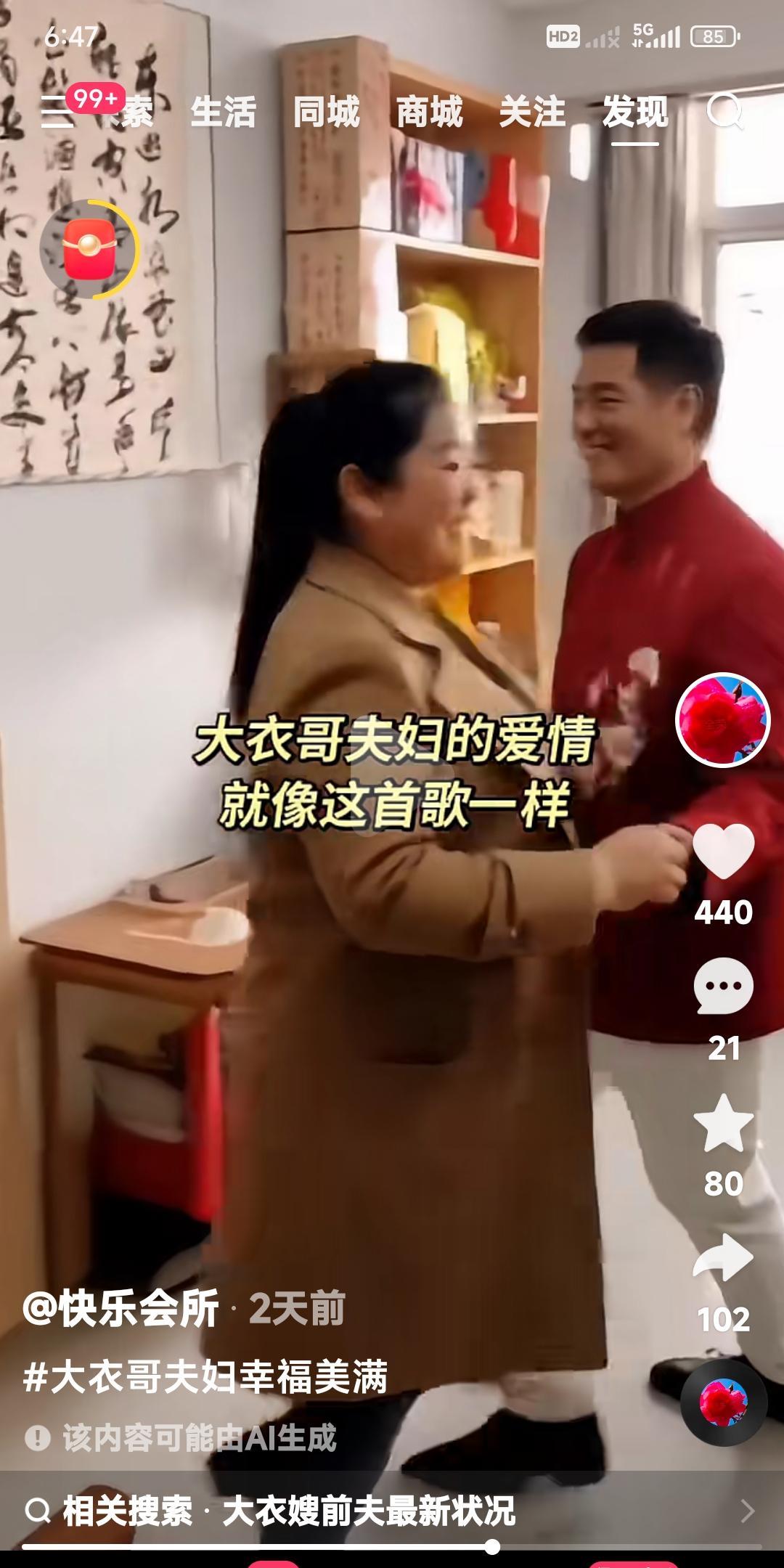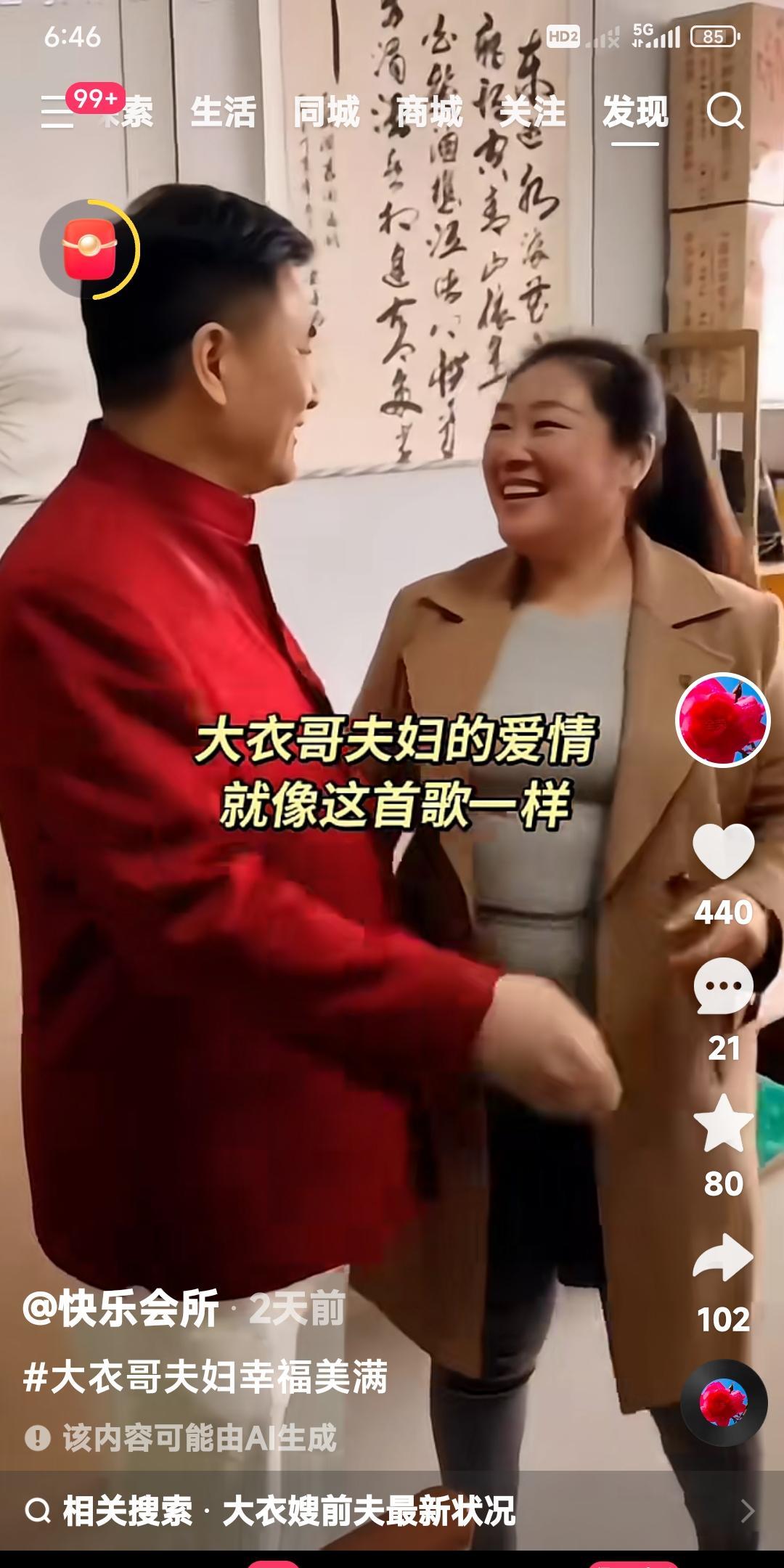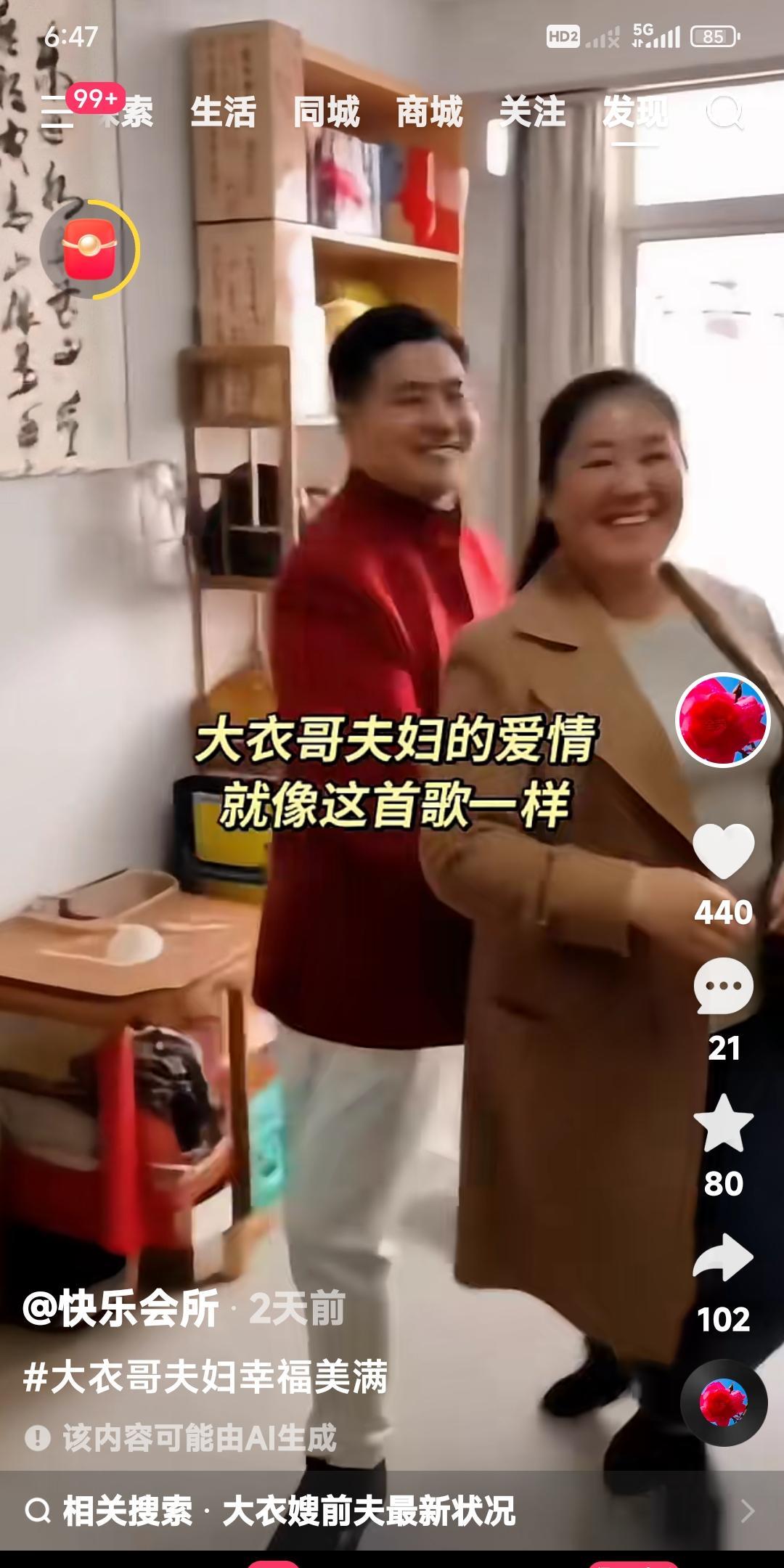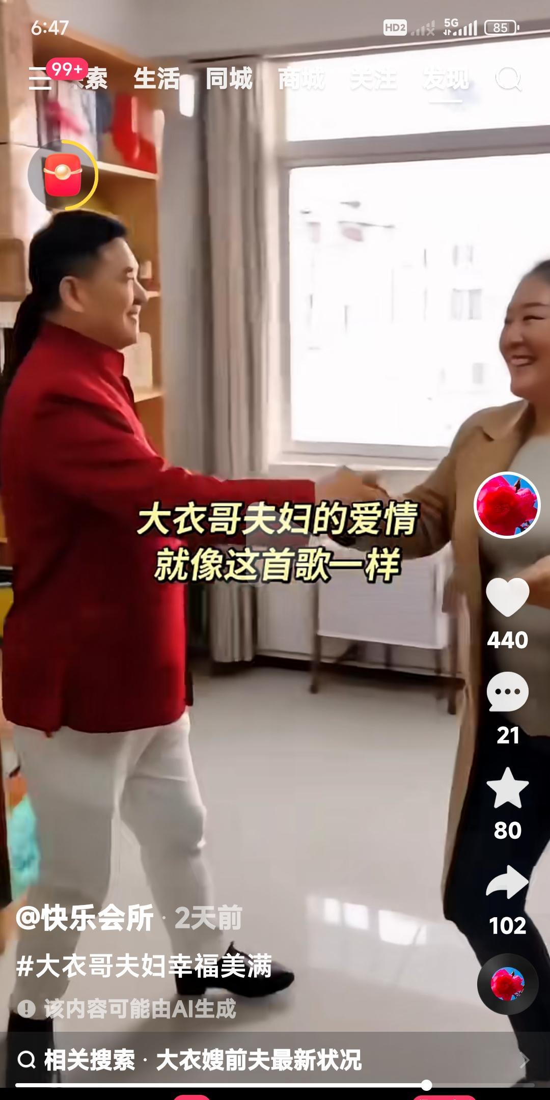 大衣哥朱之文和大衣嫂。 两口子又跳上了伴舞。 用一首爱情的歌曲伴奏。 老两口相亲相爱,就像这首歌曲一样幸福甜蜜。 赞美朱之文和大衣嫂。