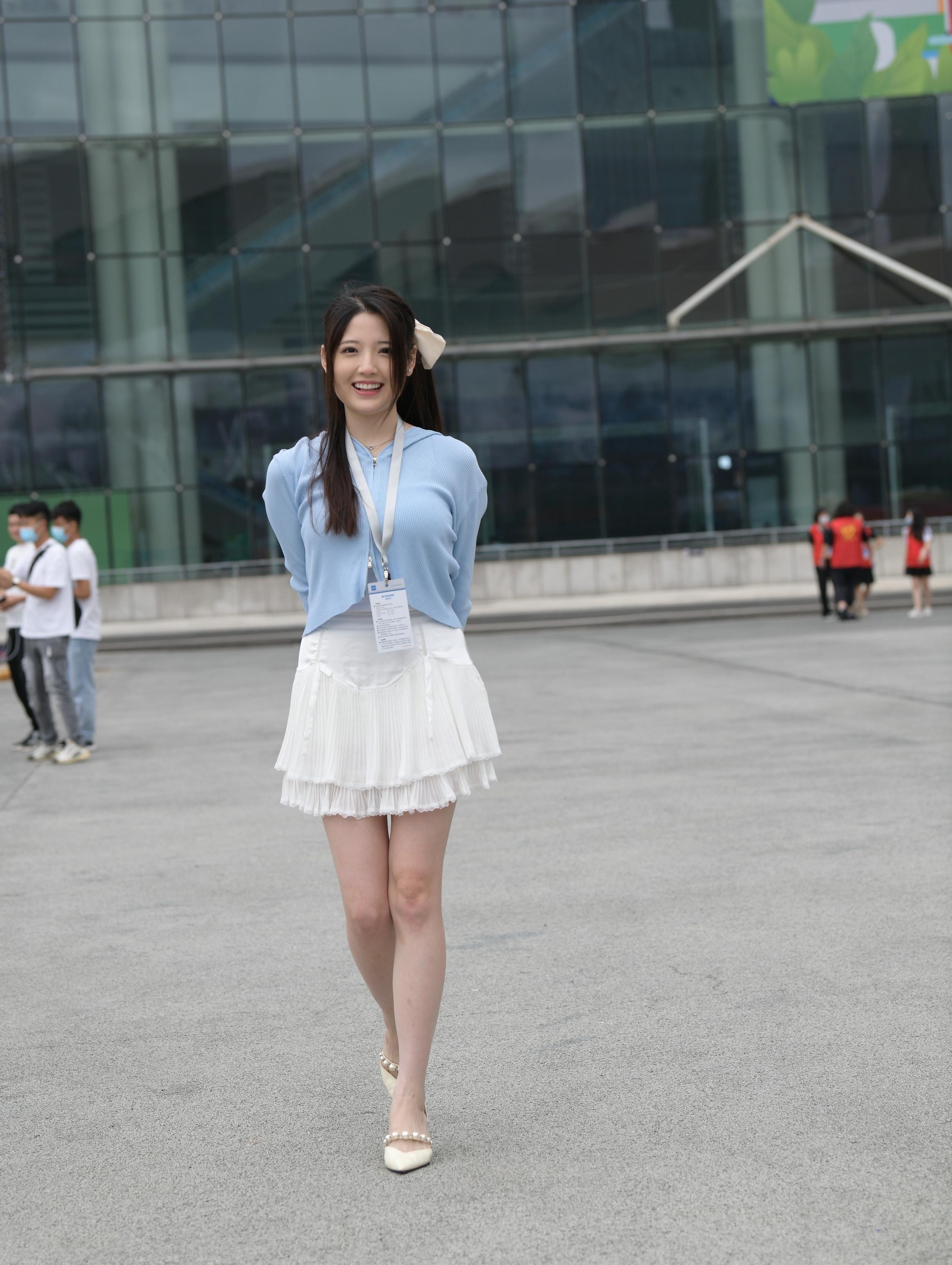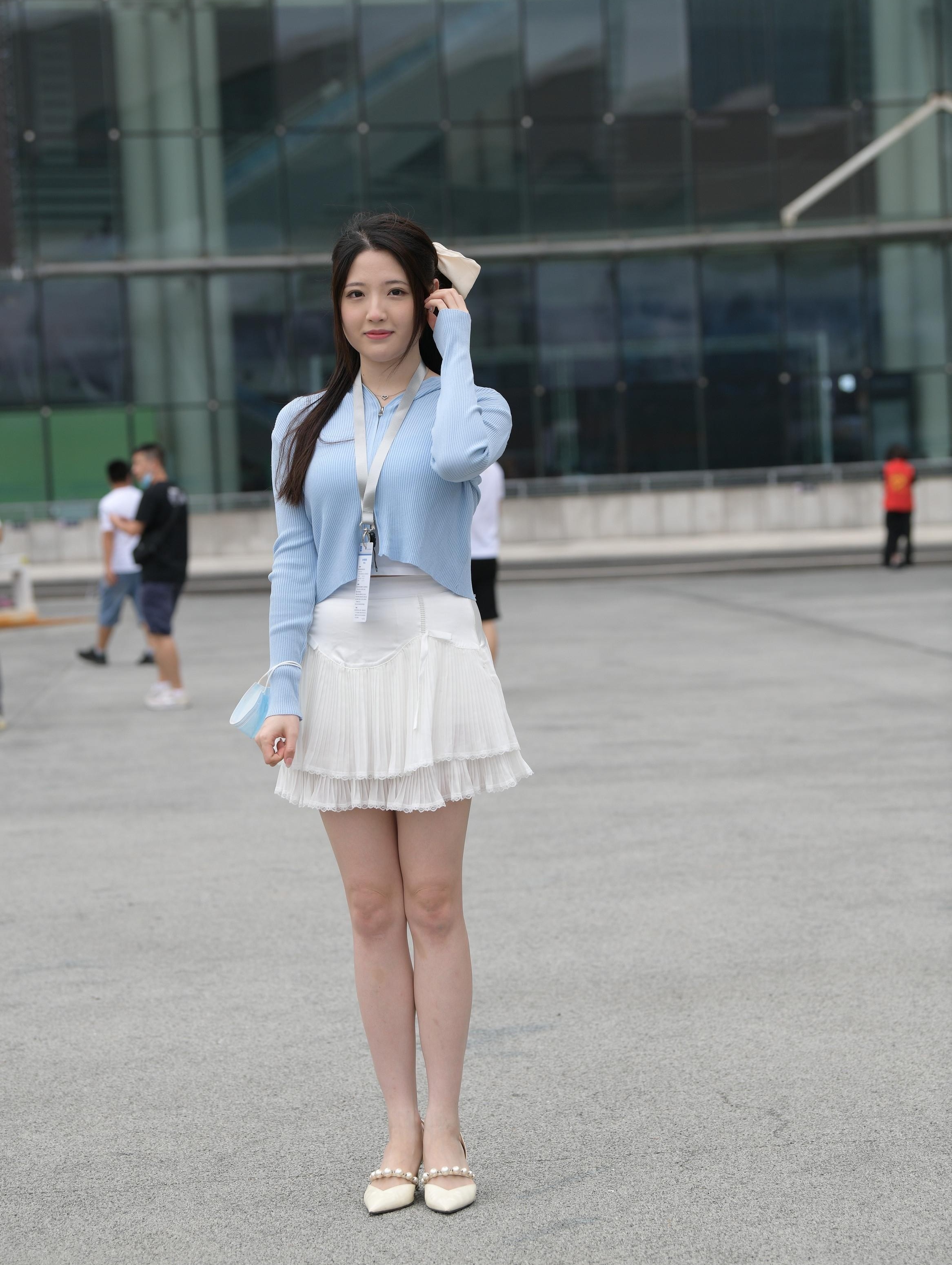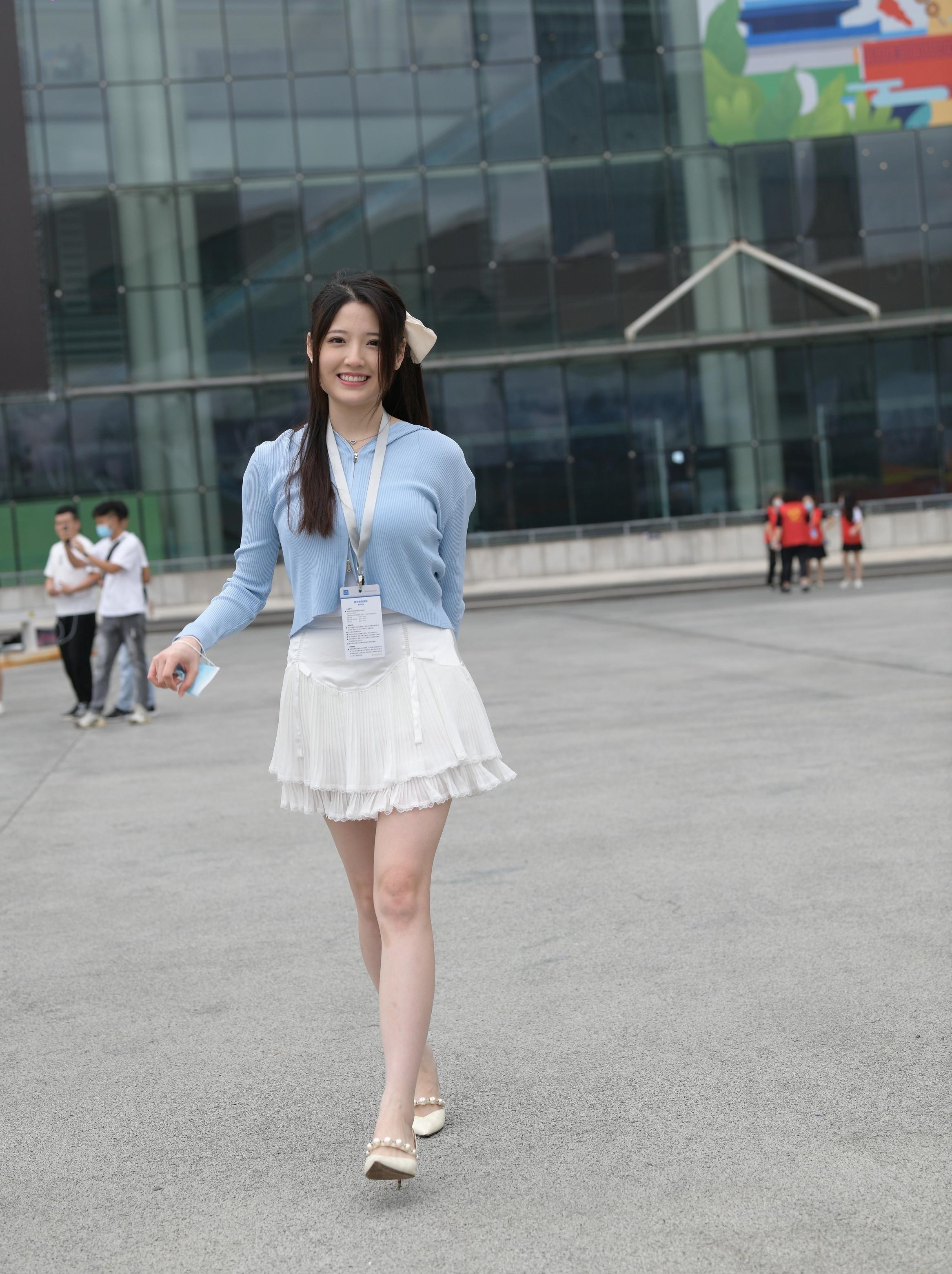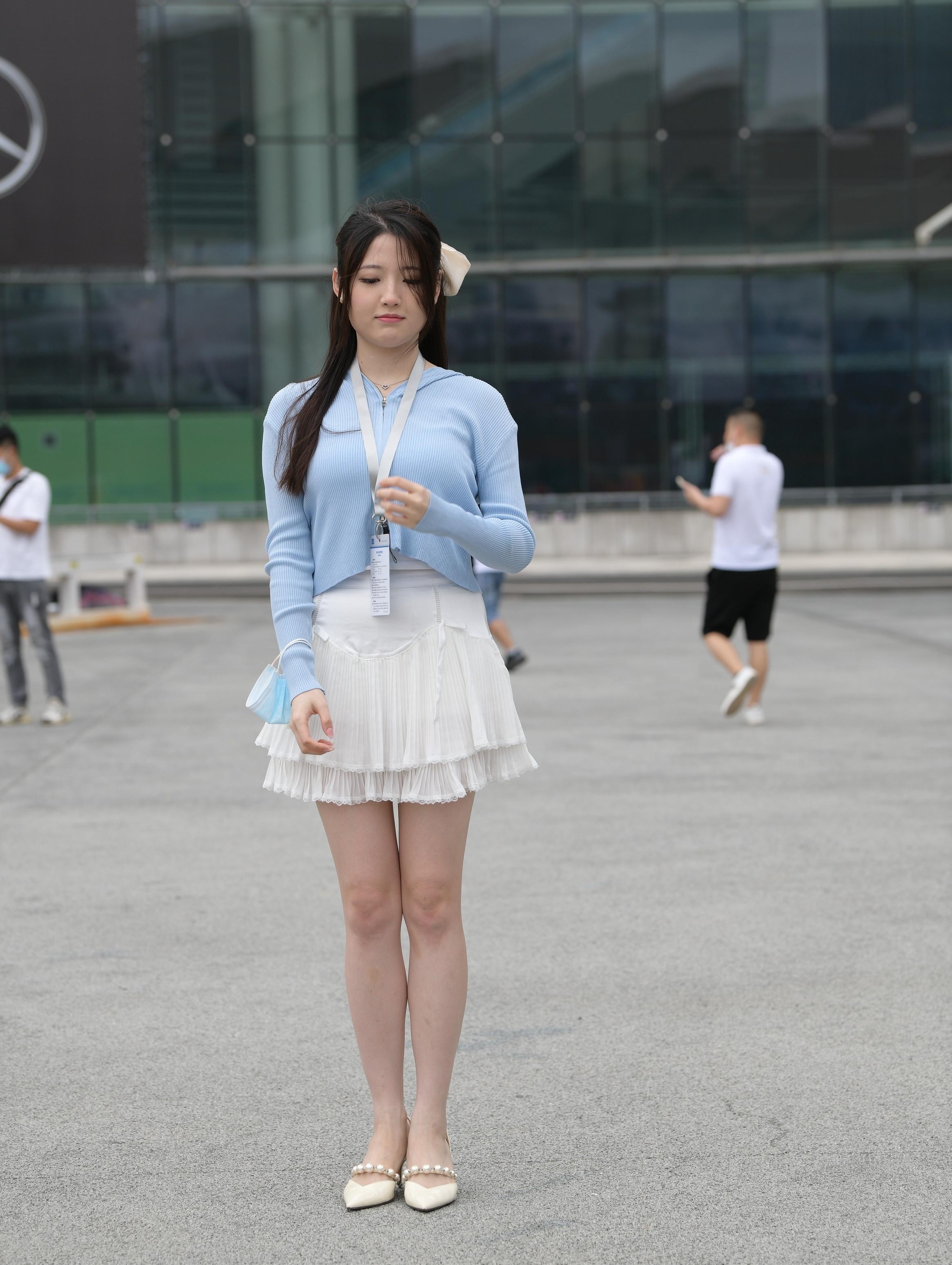街拍清甜白裙美女,这也太纯了吧