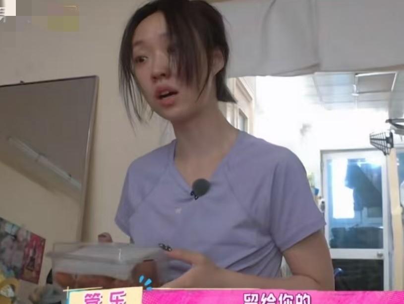 管乐从冰箱拿出一盒放了一个月的荔枝给张子涵吃,还说:“我专门留给你吃了,放了一个月我都舍不得吃,别人来想吃我都没给。”张子涵看着管乐没有说话,但眼神里的震惊和迷惑已经无声胜有声了。 《我家那闺女》这档节目也播出好几期了,但每一期管乐的状态都是邋里邋遢,很不爱干净的样子,衣服堆满屋子,乱糟糟的不收拾也不洗,穿的时候就在衣服堆里翻,这样的衣服确定是干净的吗? 这个荔枝就更离谱了,在冰箱放了一个月,不吃也不丢,还拿出来招待朋友,再好的荔枝和再好的冰箱,也不能放一个月不坏,且从荔枝和颜色来看,已经发灰了,很显然是水分干掉,不新鲜的状态,内里可能早就坏了。 就这荔枝还能被管乐吹成宝贝,真的很想告诉她,这是综艺节目,不是喜剧人大赛,喜剧效果也是要分场合的,她在这档综艺节目里的表现,真的挺减分的。