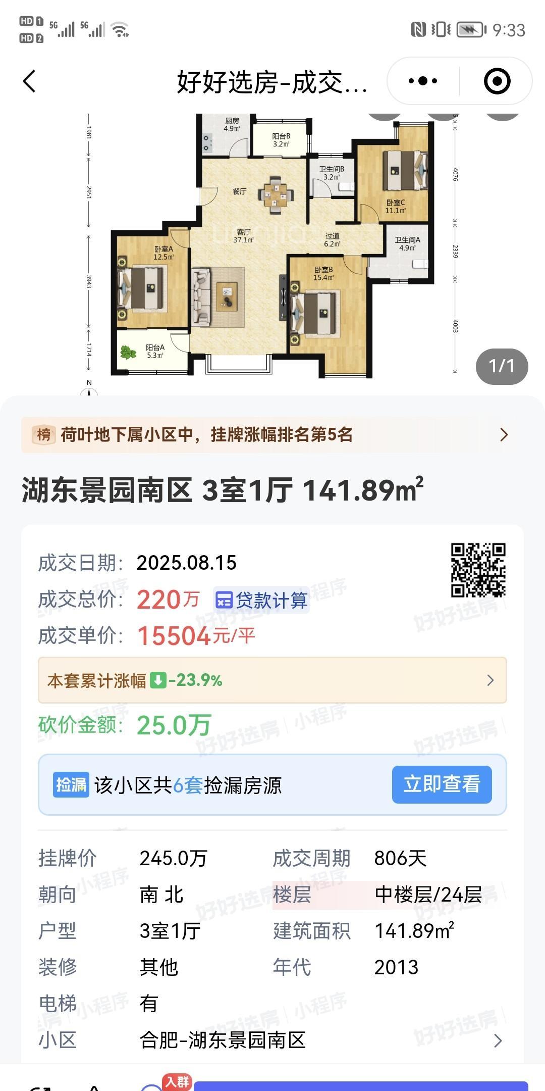 合肥顶级学区的老破小还是值钱。这个时候还要单价三万六一平。虽然比前两年便宜了不少
