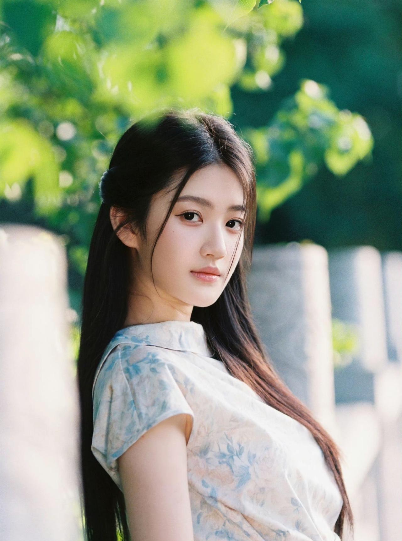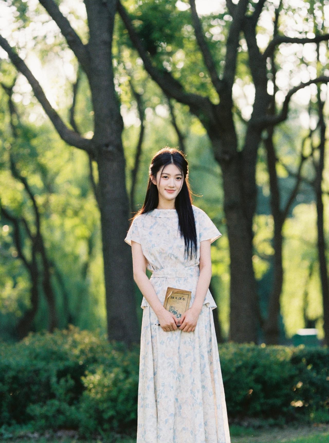 温柔少女,静坐绿草,清风拂面,岁月静好。