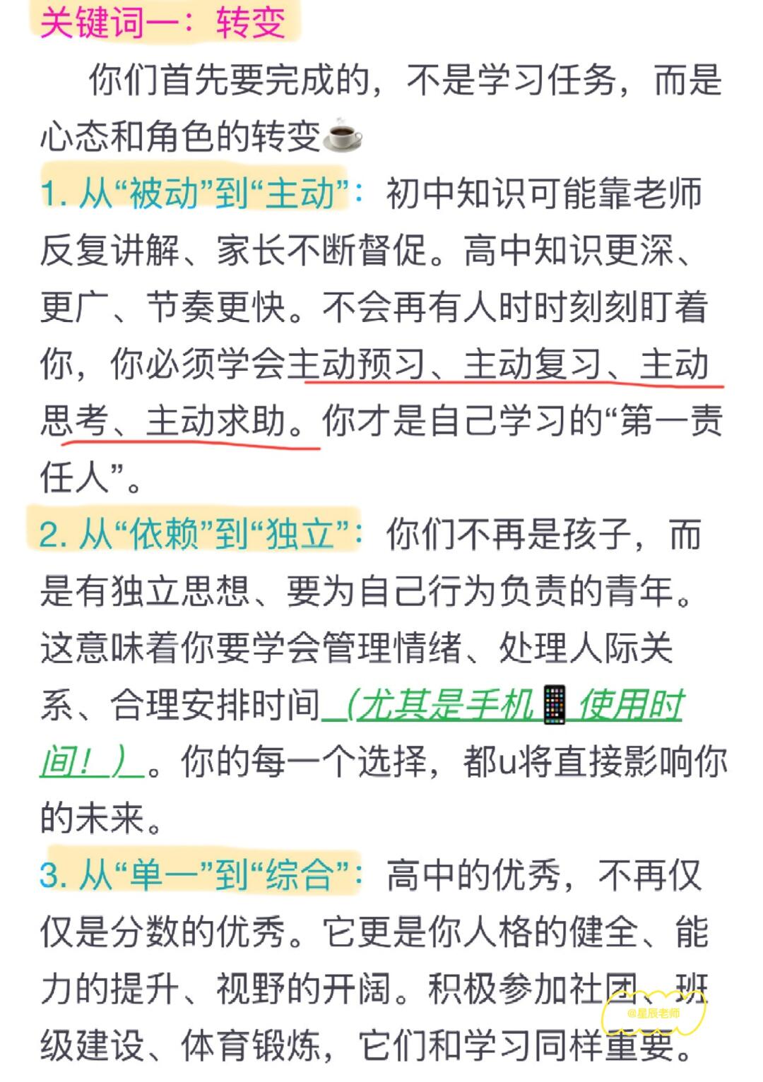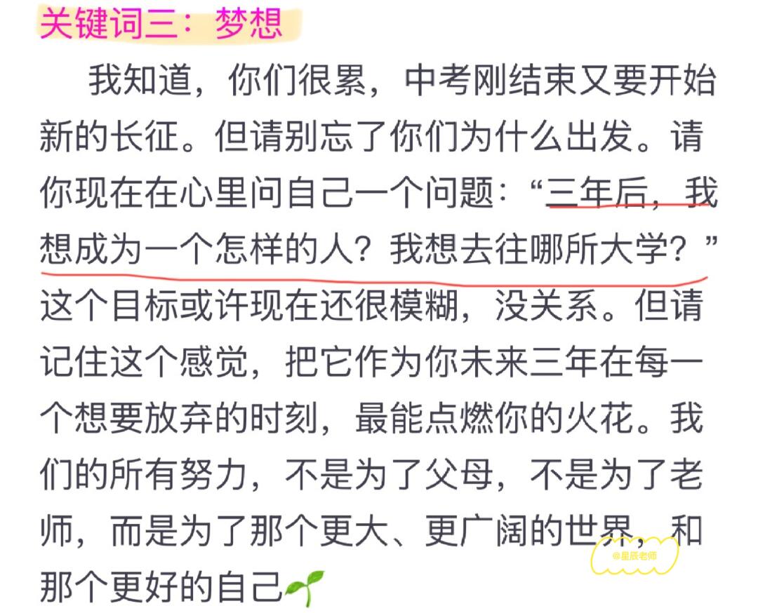明天就开学了,班主任宝子们别慌,发言稿写好了,根据我的提纲,根据下面的提纲,在本子上写上关键词,全程流畅不尬聊[okR] 1⃣️开场白(简单问候,欢迎新同学) 2⃣️聊聊要求与期待 ⭐关键词一 转变(被动到主动,依赖到独立,单一到综合) ⭐关键词二 基石(日常习惯,知识基础,人际关系) ⭐关键词三 梦想(坚持,不放弃)) 3⃣️总结