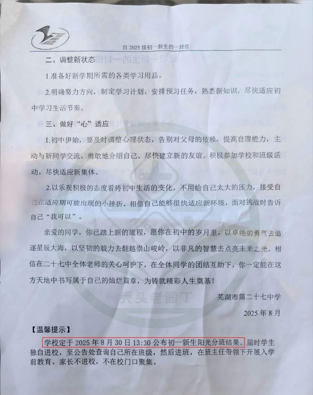 一纸“阳光分班”令,直接把芜湖二十七中家长群给炸翻了。 这事儿有多颠覆?往年,这