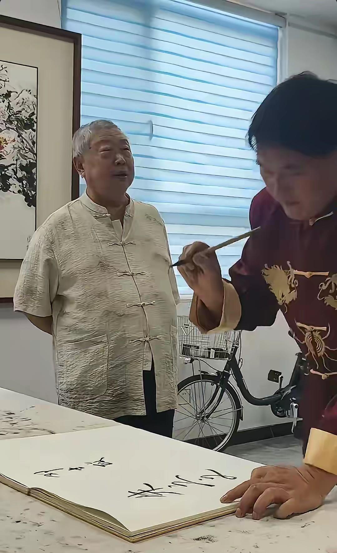 我真的要被朱之文写毛笔字,这场面给笑死! 大衣哥朱之文在演出的时候,到某位书法家