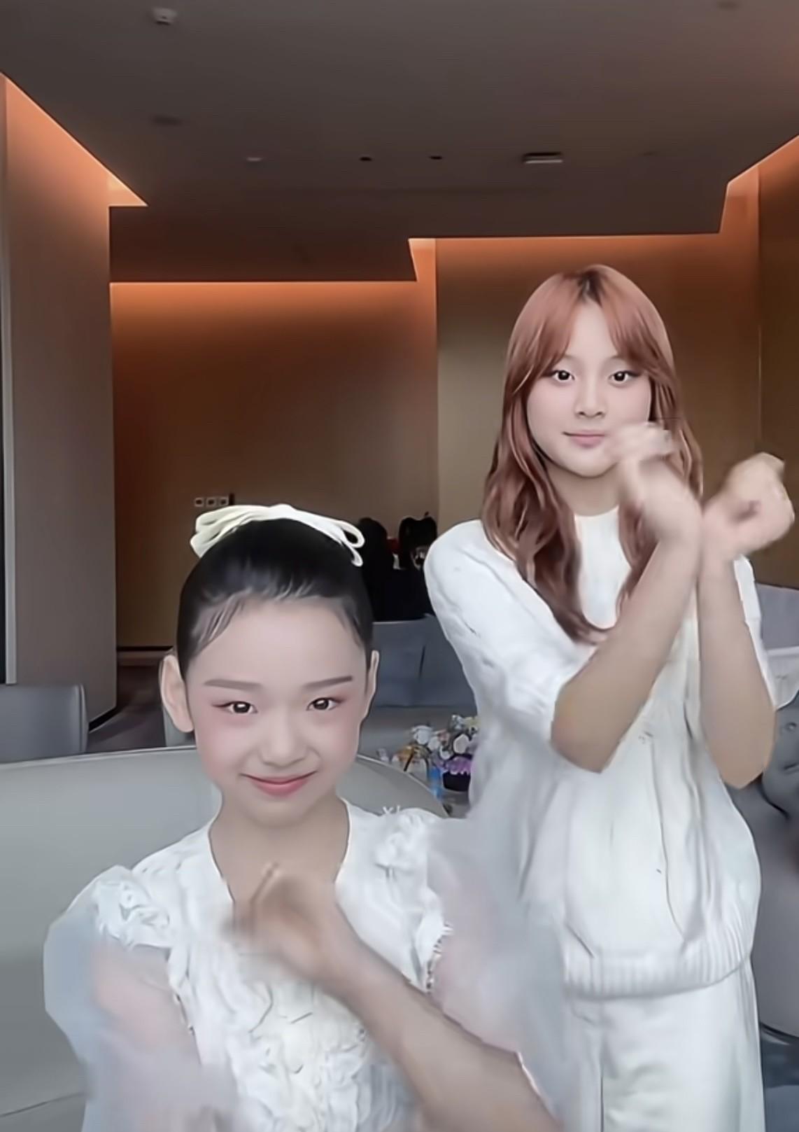 明星的亲密关系有时你无法想象,看似毫无交集的两个人,殊不知早就私交甚笃。 这次看到甜馨和小酒窝走台,然后又同拍抖音,两人同框。 其实大姐姐甜馨和小妹妹小酒窝儿时已经相识,还是小孩的甜馨开始带着比她更小的小酒窝玩耍了。 两人的妈妈李小璐和董璇都是热爱泰迪的泰迪团成员,经常聚会。 (图片来自网络,侵删)