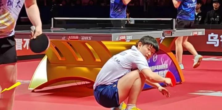莎莎和蒯曼这次被王曼昱和钱天一揍了一个3比2。[呲牙]中间有一个球莎莎飞奔过去蹲