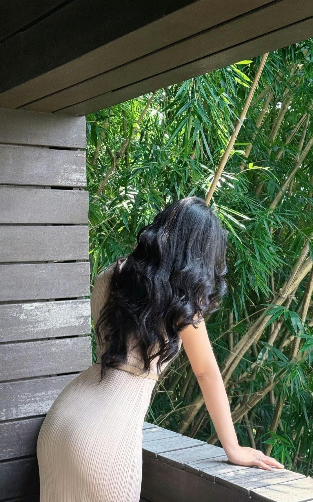 优雅绿植间,轻奢连衣裙,尽显迷人风姿
