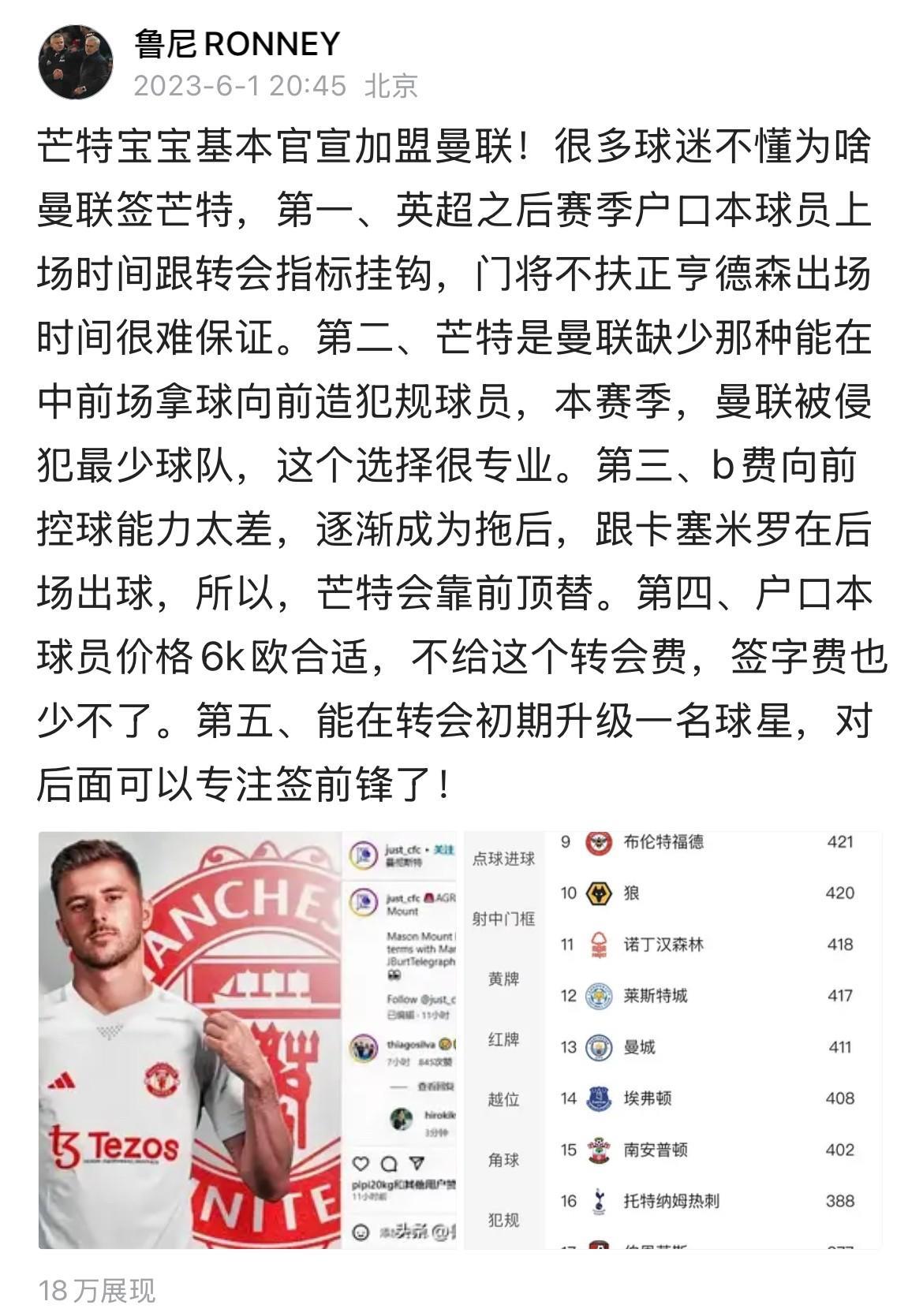 曼联最该去签4个球员,全部被教练否了,但凡签2个,曼联成绩早上去了。 赛季末时候,作者认为应该签格拉利什,价格不会太贵,当时,某些伪球迷很不屑,各种喷,结果呢,这赛季大爆发,3轮4助攻。 也一再强调,别去签库尼亚,签埃泽。一个3轮0球0助攻,另一个帮水晶宫拿社区顿夺冠,还加盟阿森纳。入选世界杯算稳了。另两个怀特、奥斯梅恩。 当时,芒特加盟时候,作者也告诉某些曼联伪球迷,曼联太需要这样球员,结果,也被狂喷。这赛季又狠狠打脸那群伪球迷。作者有关曼联推荐92%以上都证明了正确。在不换教练,库尼亚、芒特又伤了情况。只有一招帮曼联,拖后上卡塞米罗、乌加特,大b上去替芒特,梅努替补。迪亚诺平替