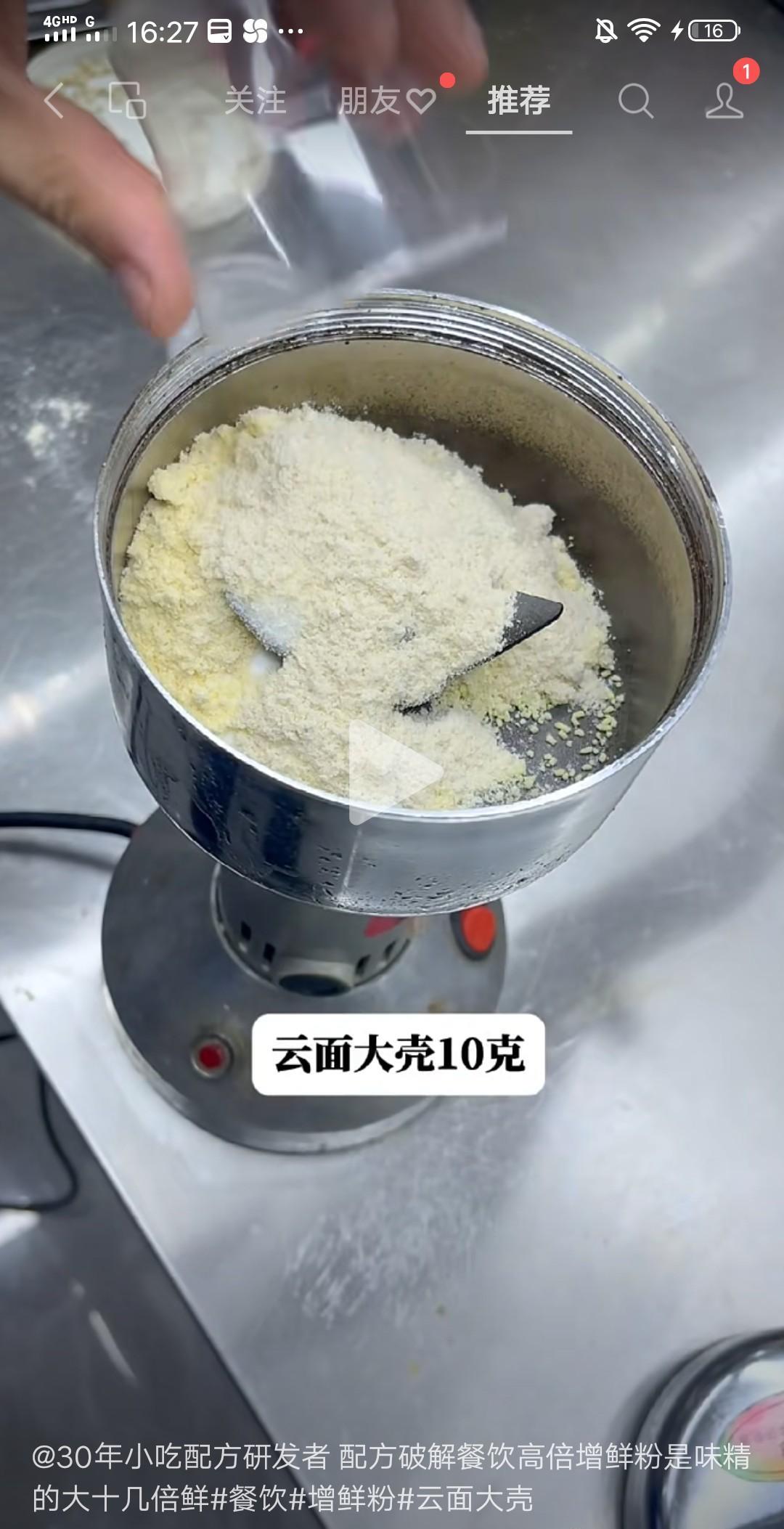 高倍增鲜粉配方 鸡精25克, 味精38克, 干贝素3克, 酵母提取物3克, 老母鸡鲜香粉4克, 云面大壳10克,把这些材料打成粉即可