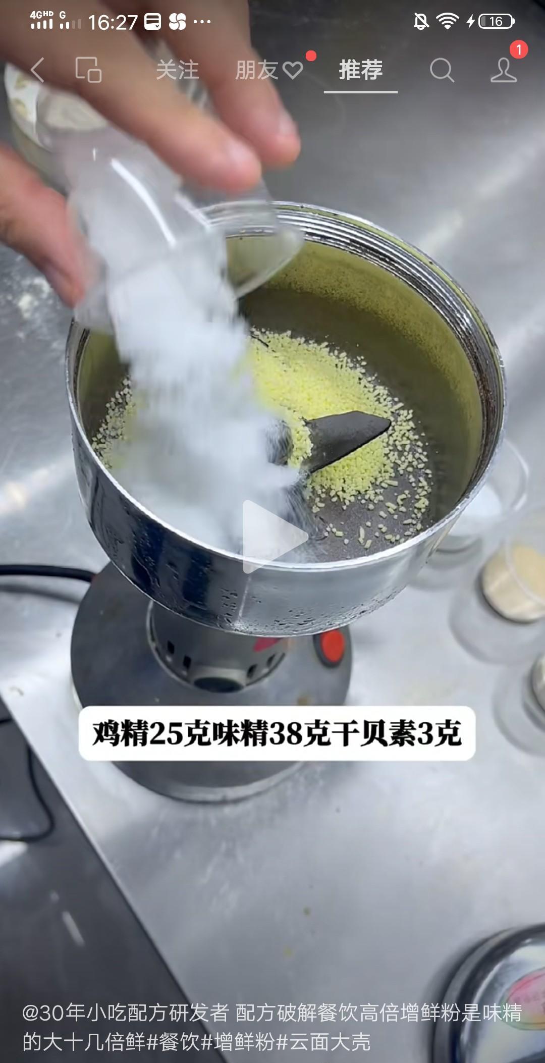 高倍增鲜粉配方 鸡精25克,味精38克, 干贝素3克,酵母提取物