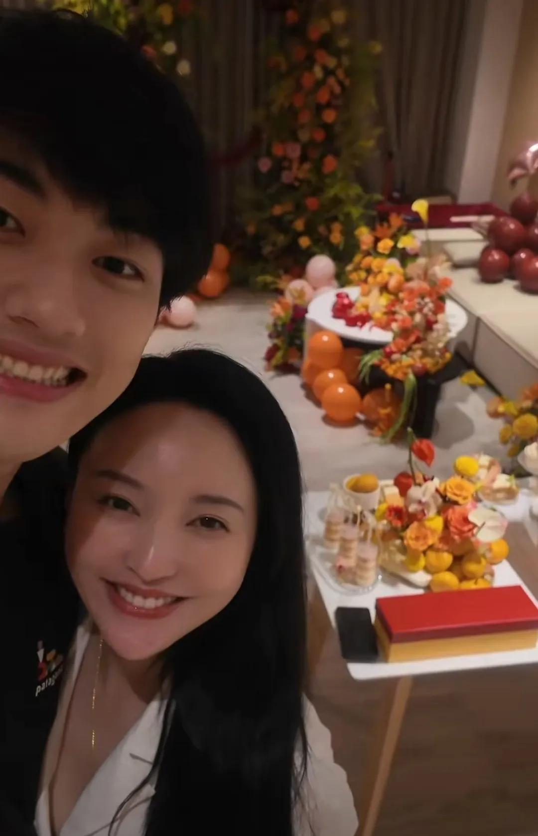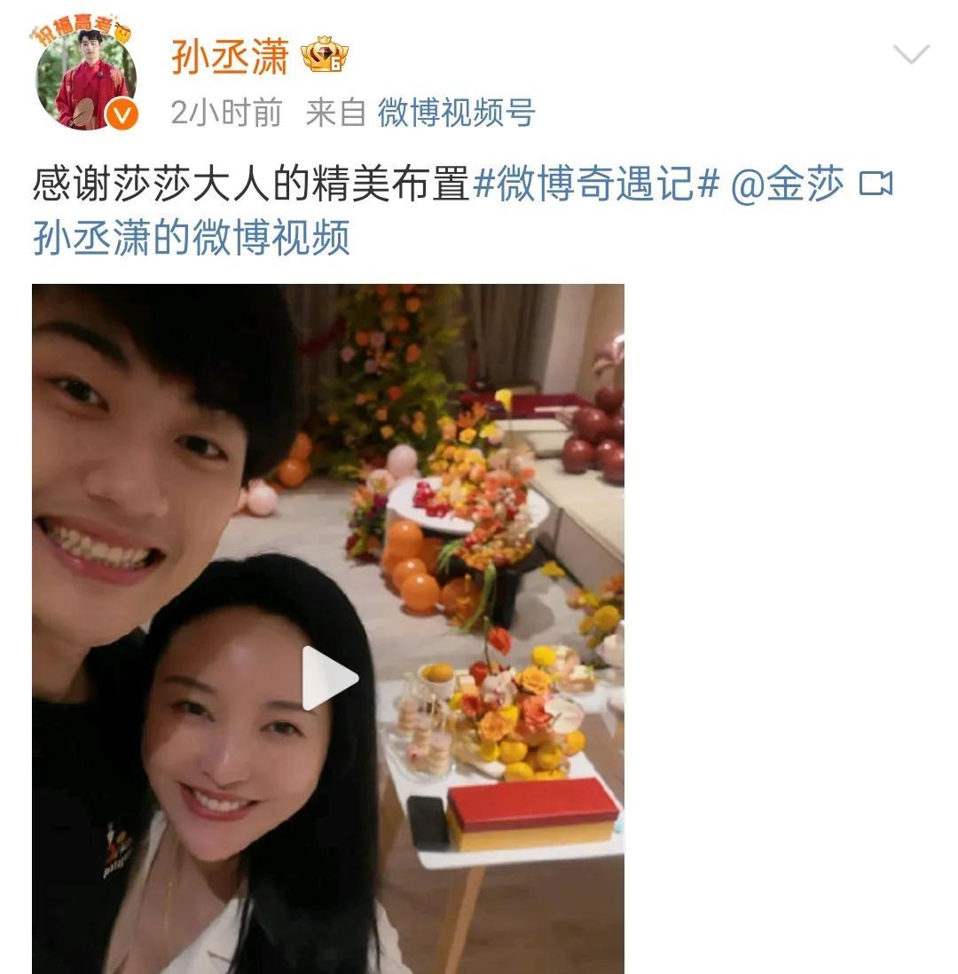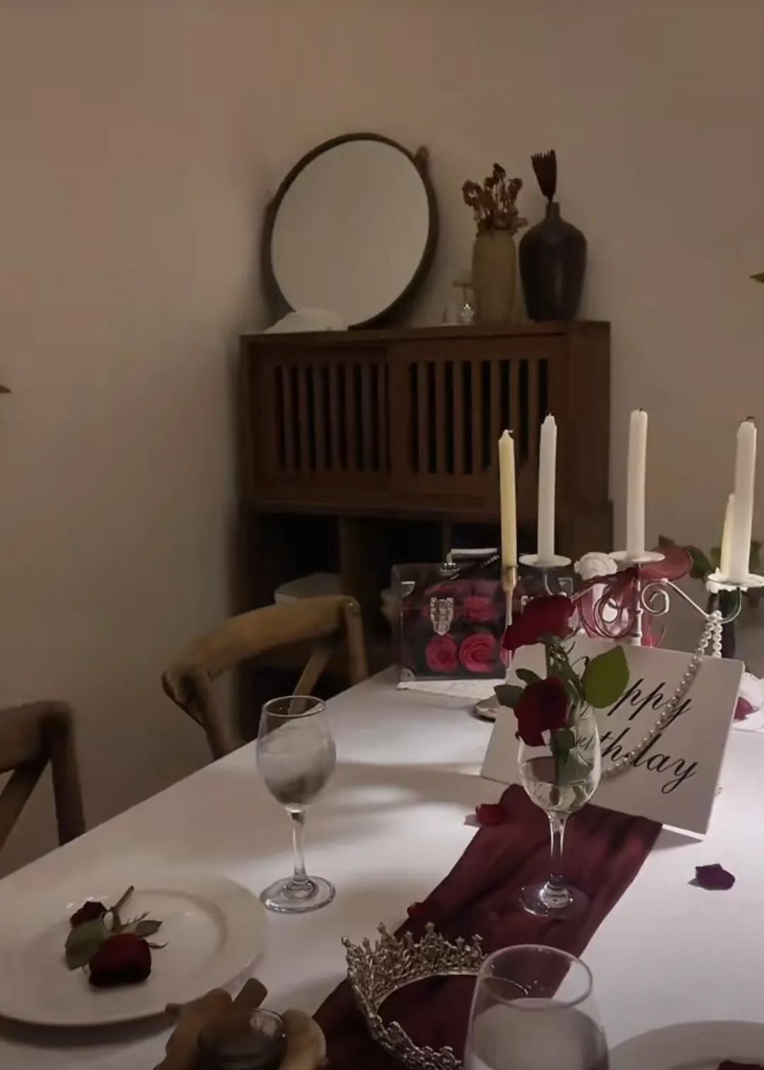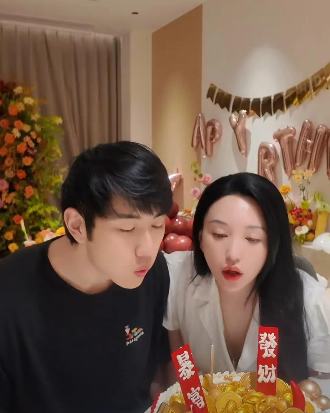 金莎为小17岁男友孙丞潇庆生,精心布置了生日趴,准备了一桌美味的大餐,还订制了写