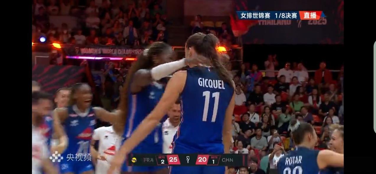 中国女排1-3不敌法国女排,止步16强,创造女排世锦赛近年最差战绩。 四局比分分别为20-25、25-27、25-22、20-25。第二局中国队曾经错失三个局点,是本场比赛失利的关键。