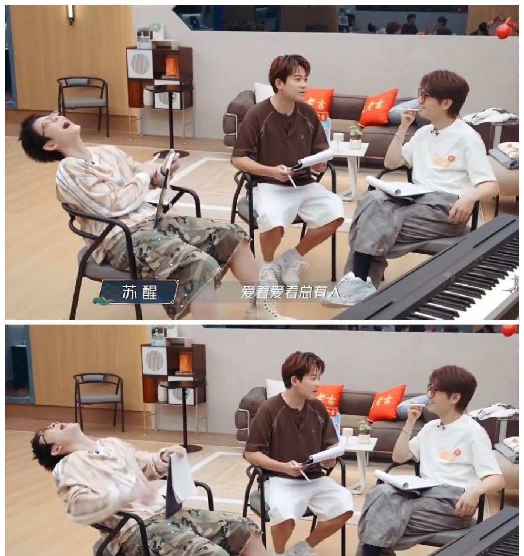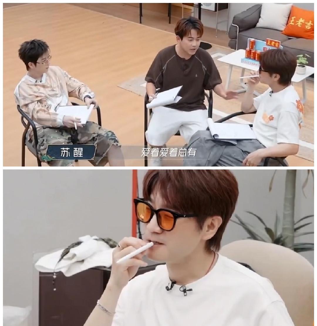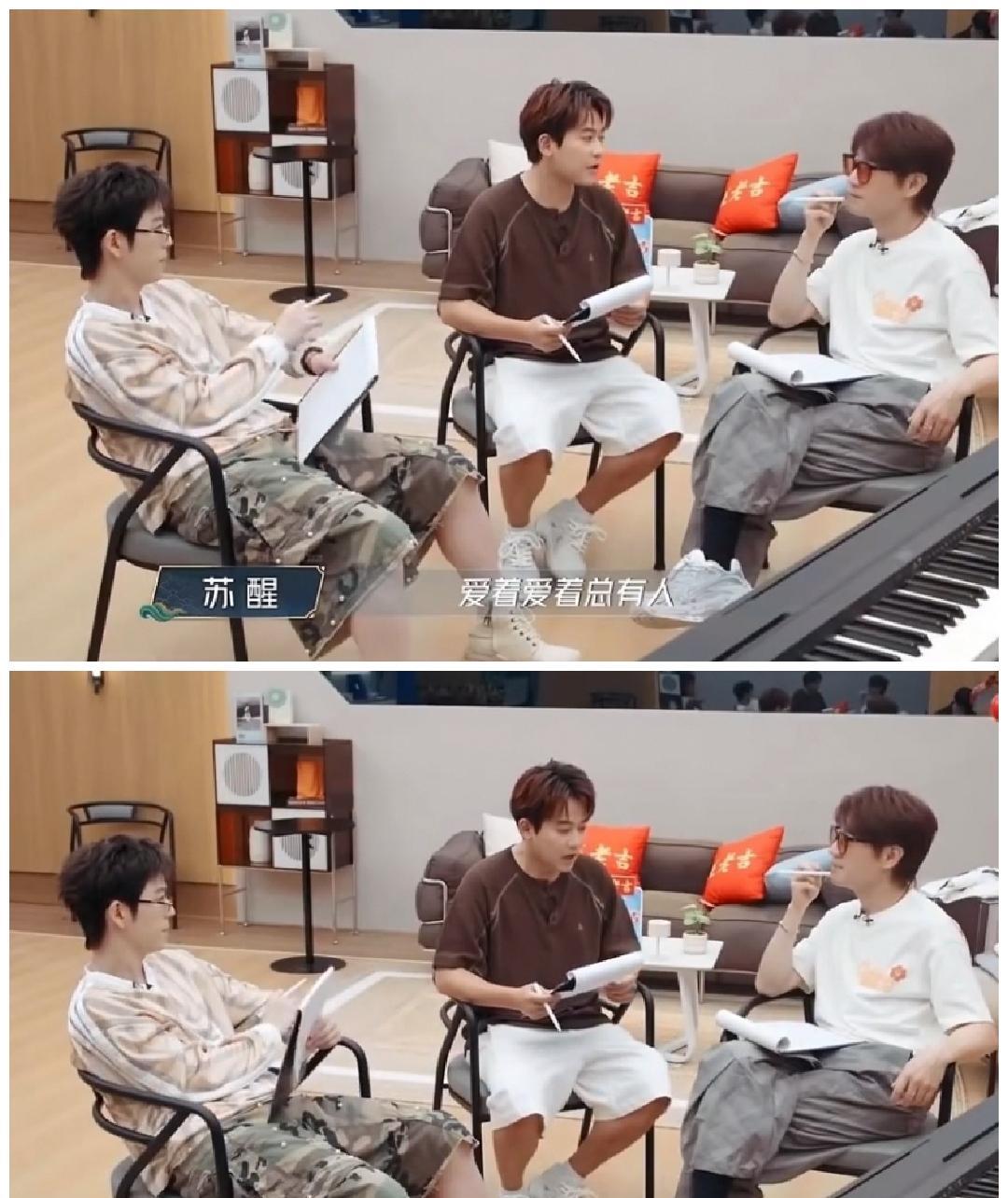 苏醒有句歌词唱得不稳定,让王铮亮老师指导,苏醒:爱着爱着总有… 王铮亮:对 苏醒:爱着爱着总有人 王铮亮:不对 苏醒:爱着爱着总有人 王铮亮:对 苏醒:爱着爱着总(王栎鑫在一旁笑疯了),爱着爱着总有人(越唱越心虚),爱着爱着总有…爱着爱着总有… 王铮亮:啧~ 苏醒崩溃了,把本子一摔:不学了,不爱了… 哈哈哈哈哈哈哈太可爱了