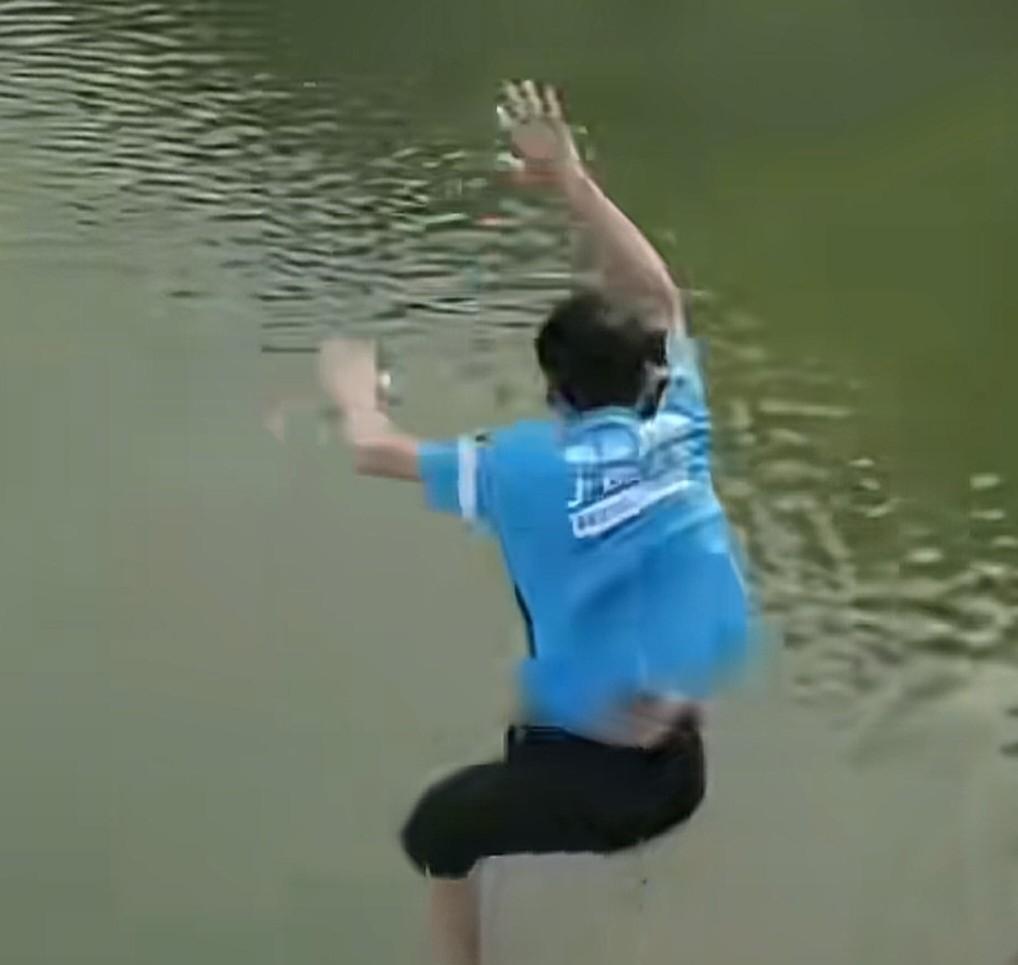 这么高说真的没有几个人敢跳下去,为英雄点赞[点赞]