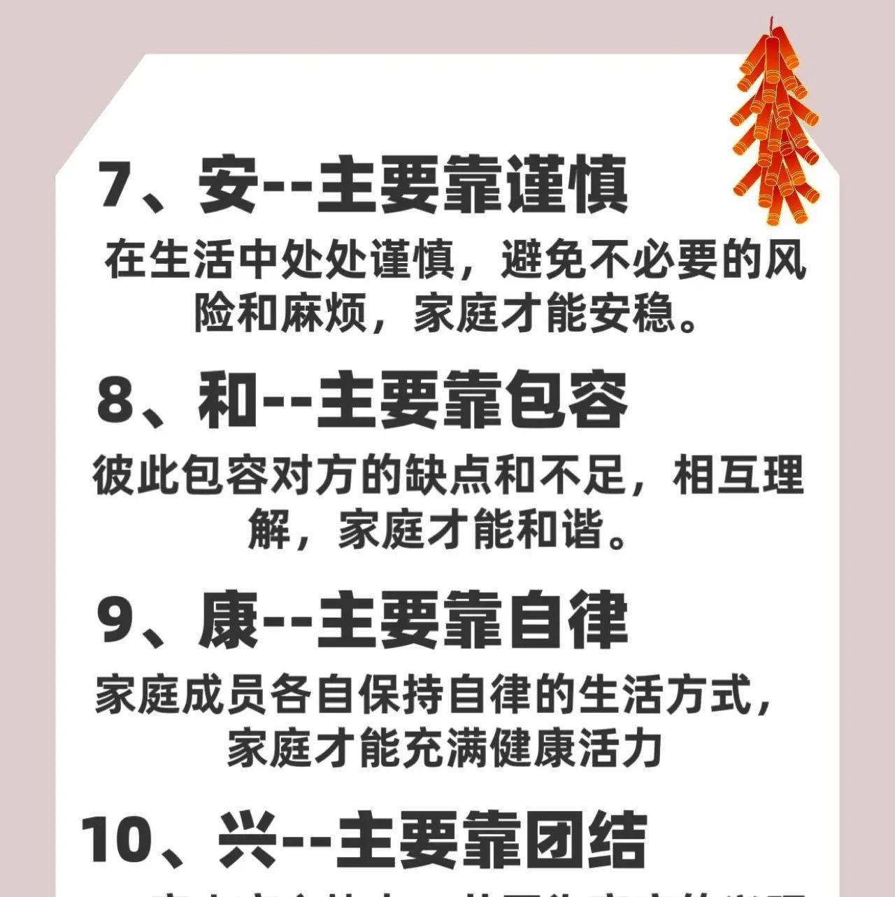 一个家庭,怎么越来越旺? 想要家庭越来越好,就要做好“福、禄、寿、喜、财、运、安、和、康、兴”这10字“旺事”。一个家庭的蒸蒸日上,需要全家人各司其职、共同努力。你的家庭一定会和睦安康!