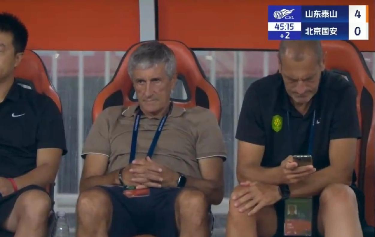 哈哈哈哈,半场就4:0了。 上半场泰山队4比0领先北京国安啊。 国安助理教练已经