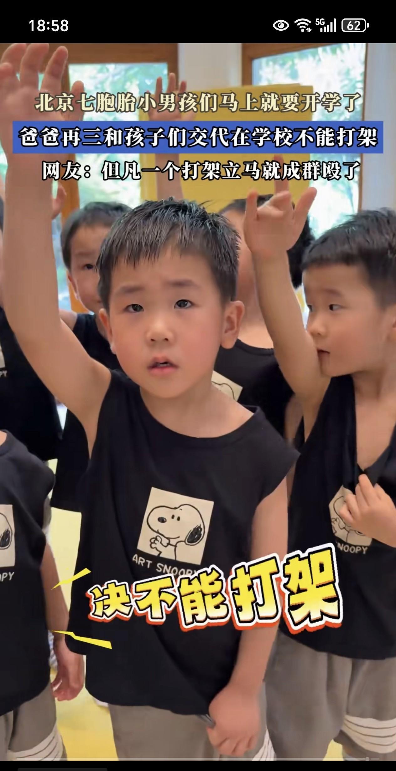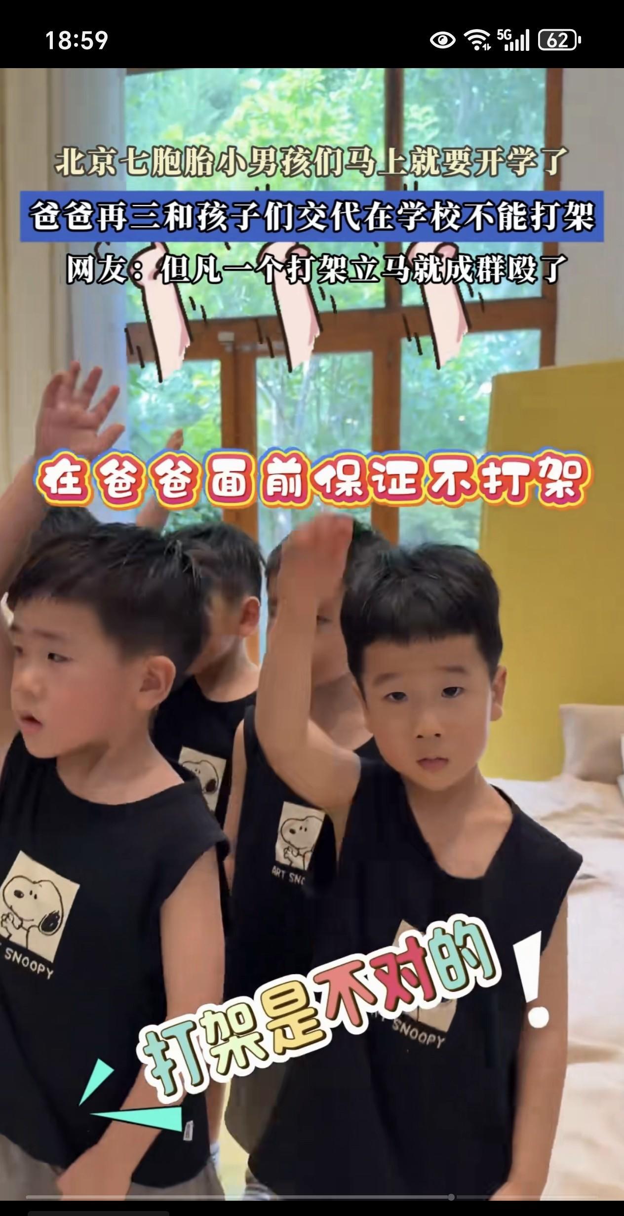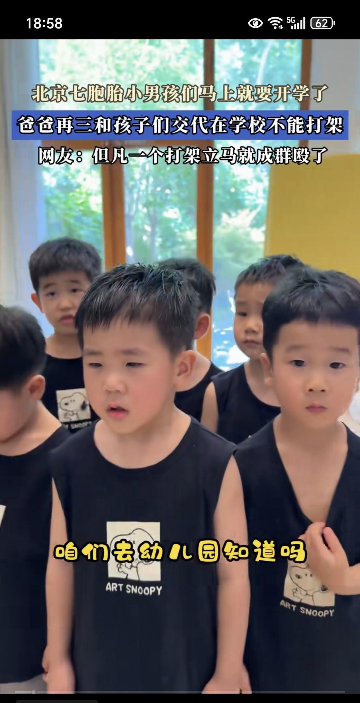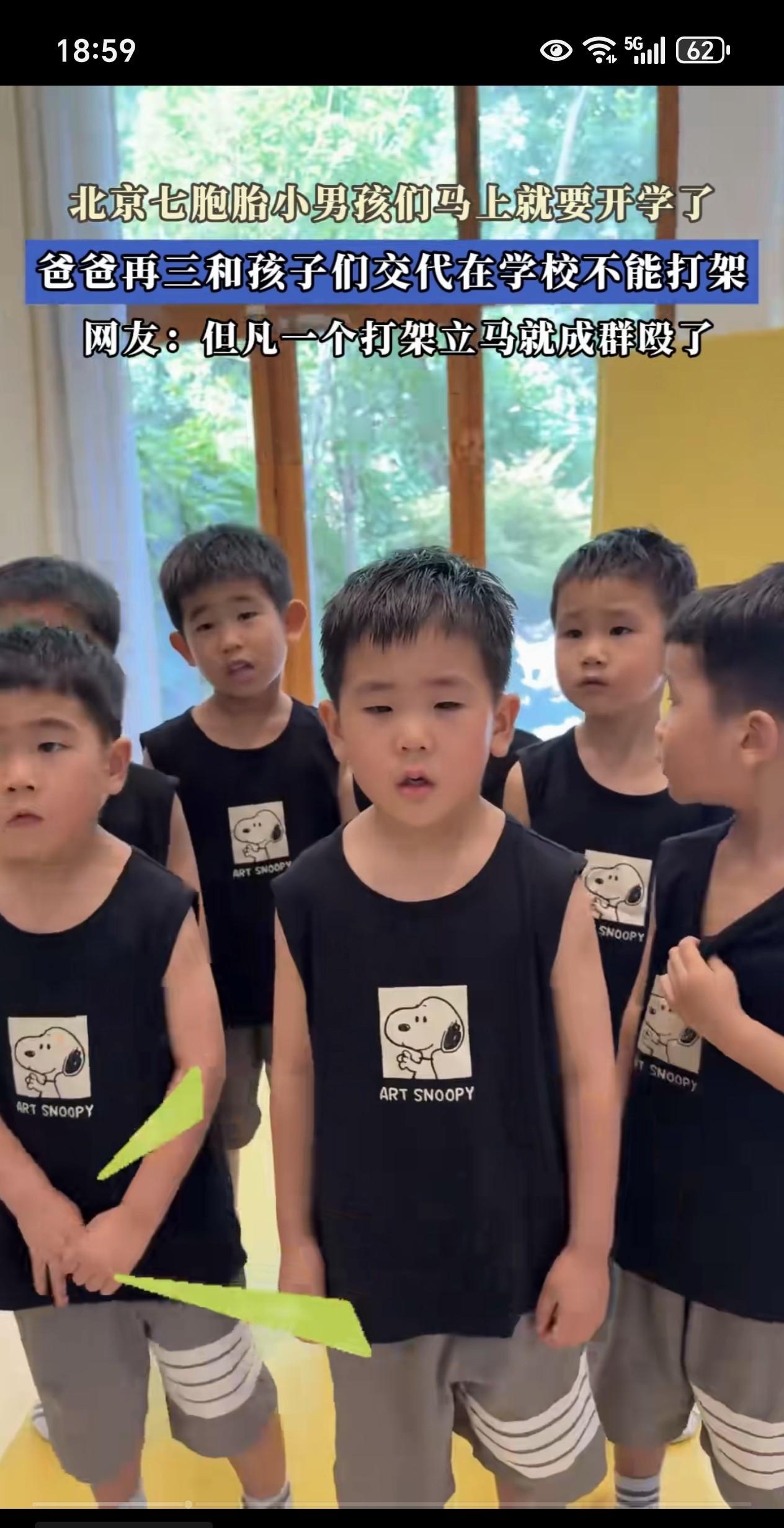这七胞胎,有三四个长得一样,另外两三个长得不一样,特别是后排两个男孩,跟前面几个不一样。 自媒体时代,每天拍他们的视频,应该就很火。好像一群蜡笔小新,每天给美牙整出不同的动静和风浪,发愁抓狂的。C位那个,应该就是带头的,擒贼先擒王,搞定他就可以镇住所有的。
