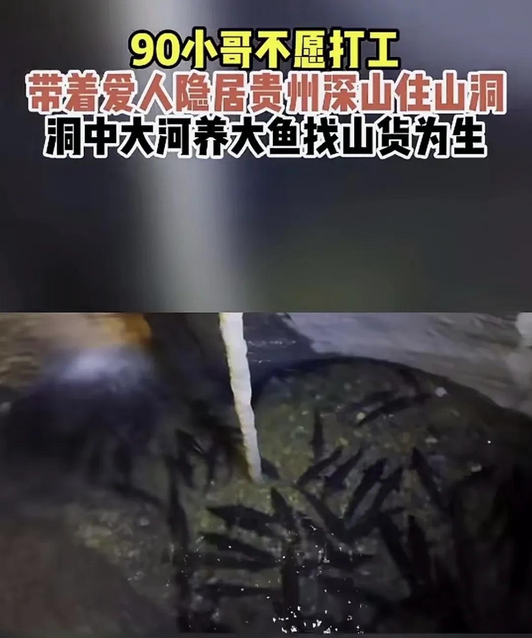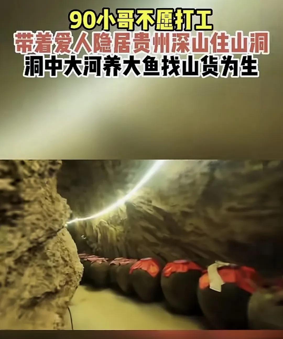 现在很多人都被房贷车贷压得喘不过气 而贵州有个90后小伙却反其道而行之 他不愿打工,带着爱人隐居深山,在洞中大河养鱼找山货为生,实现了无房贷无车贷的悠闲生活。 山洞中的河道适合养鱼,洞中的恒温作为酿酒的天然仓库,平时还能根据季节在大山里找不同的稀有山货拿到市场上贩卖,房舍前后还能养家畜种菜,不仅生活能够自给自足,如今养鱼和酿酒都做成了生意。据说刚开始家人反对,女方当初还偷户口本和小伙结了婚。 在大家都拼命往城市挤时,他们选择回归自然,这样的勇气和对生活的别样追求,着实让人羡慕!