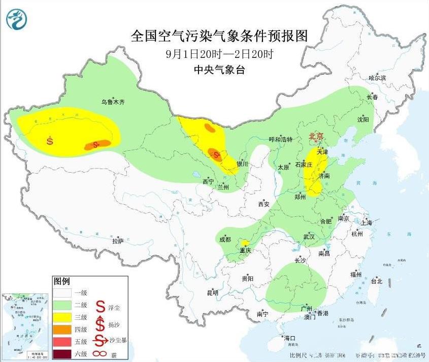 冷空气携大风沙尘到来,甘肃、新疆、内蒙古部分地区警惕沙尘暴 今天冷空气已影响新疆北部,给当地带来明显降温,新疆巴里坤发布了今年下半年我国首条寒潮预警。冷空气前锋将携大风继续向东南方向移动,具备起沙条件,西北地区将有大范围沙尘天气。 根据预报,8月31日晚上到9月1日晚上,新疆南部和东部、甘肃西北部、内蒙古西部等地有沙尘天气,部分地区有沙尘暴。后续沙尘还将影响甘肃中北部等地,需留意沙尘带来的不利影响。