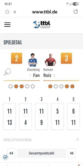 樊振东德甲萨首秀遭遇开门黑! 8月31日,樊振东首次代表德甲劲旅萨尔布吕肯俱乐部出战德甲联赛,对手是贝格诺伊施塔特俱乐部。 樊振东以第一单打身份出战,首盘面对世界排名302名法国选手罗曼·鲁伊斯,分别以11-13、11-4、11-9、5-11、6-11大比分2-3落败;第四盘樊振东再度出战,对手是贝格诺伊施塔特的第一单打选手杜达,此时萨尔布吕肯总比分已经1-2落后,如果世界冠军樊振东无法赢下比赛,球队将1-3落败。 再度上场的樊振东依然无法调整到最佳状态,又分别以9-11、11-4、5-11、3-11的悬殊比分失利,萨尔布吕肯大比分1比3不敌贝格诺伊施塔特。 本场比赛球迷热情高涨,原本只能容纳1980人贝格诺伊施塔特主场,俱乐部临时增加座位,共拥入2500名球迷,原价25欧元的站票都被黄牛炒到 180 欧元。
