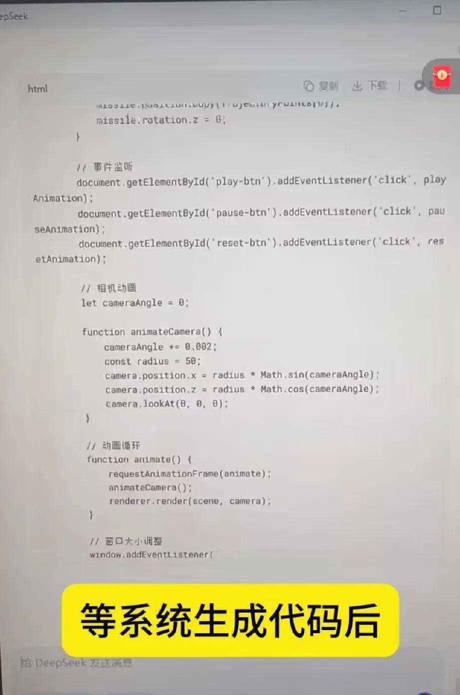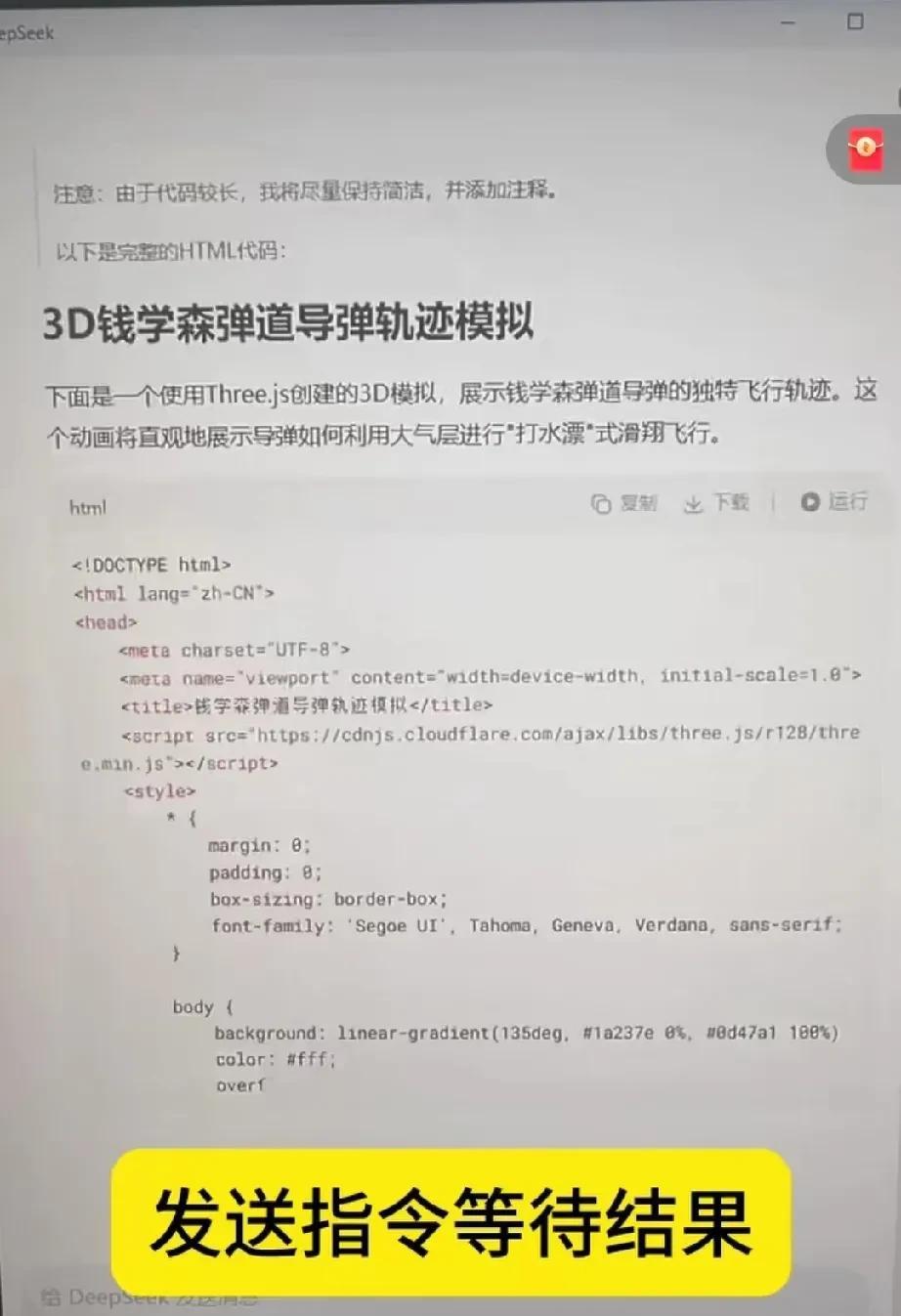 网友发现deepseek能生成钱学森弹道导弹轨迹动画!先给ds输入指令,然后ds