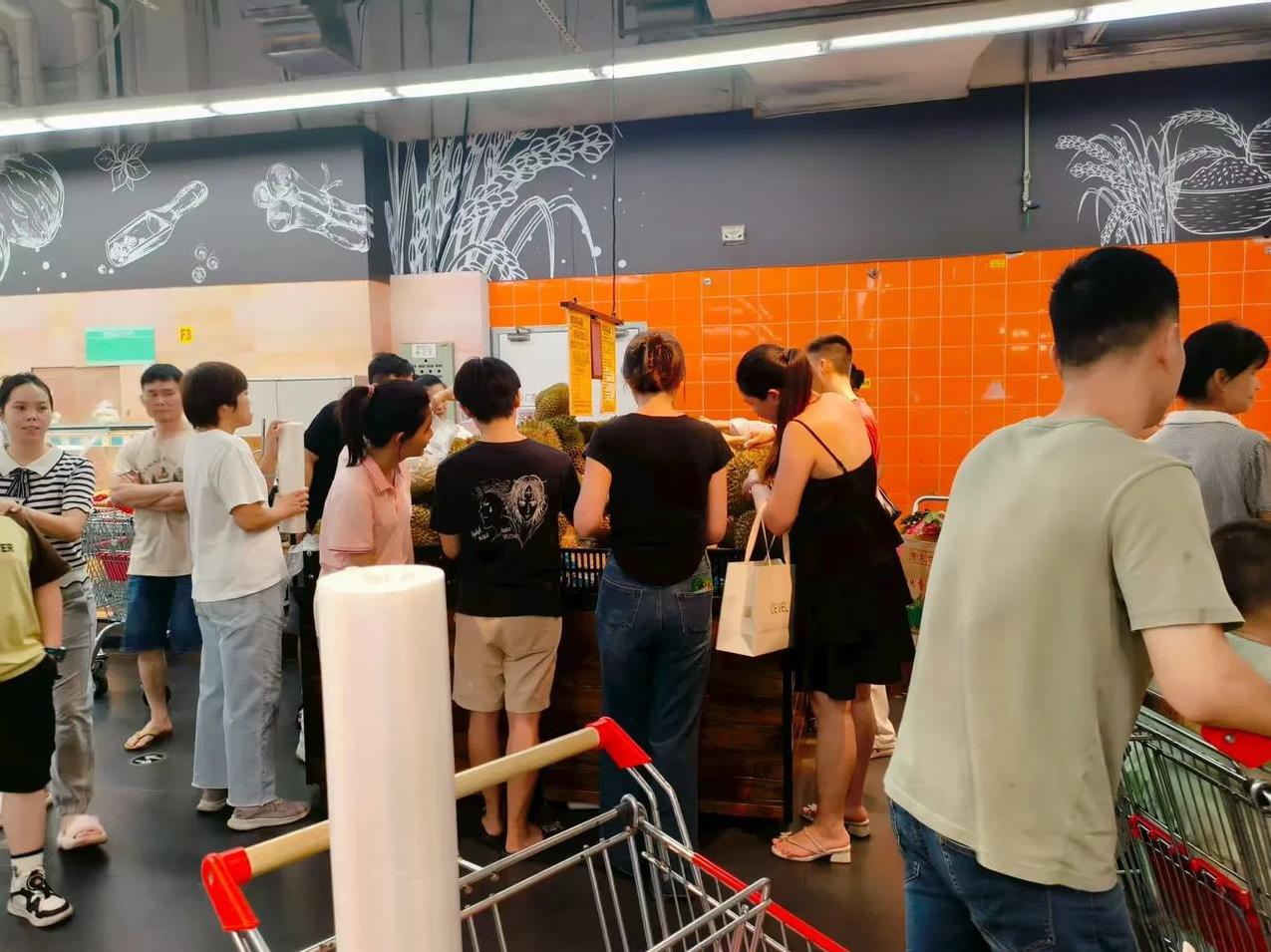 不知道大家发现没有,爱买榴莲的基本是女人。 今天晚上我带孩子去吃自助餐,吃完自助