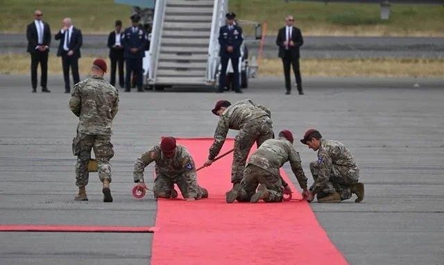 8月31日,上合组织天津峰会如期举行,各国贵宾也都提前抵达,有网友和媒体注意到一个小细节让人感觉美国的工作效率已经远远落后中国了。 据悉这个小细节就是在飞机现场铺红毯的方式,从曝光的画面我们可以看出,中方铺红毯两个人就可以搞定了,几乎都是机械化了,而在第二张图片中,美方铺设红毯还全是人工,可笑的是他们还用胶带往地面上粘贴,估计五个人很长时间才把红毯铺好,虽然这不是什么大事,可是从这个小细节可以看出美国现在真的很落后。