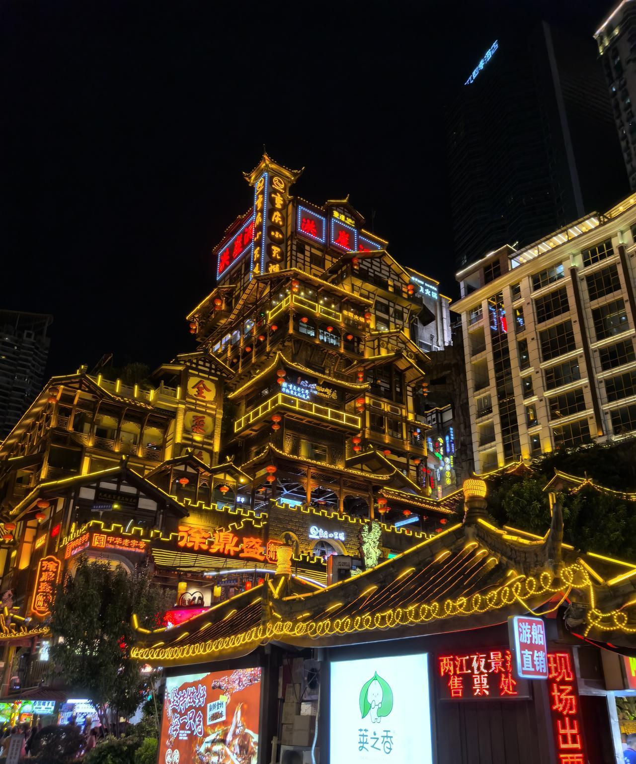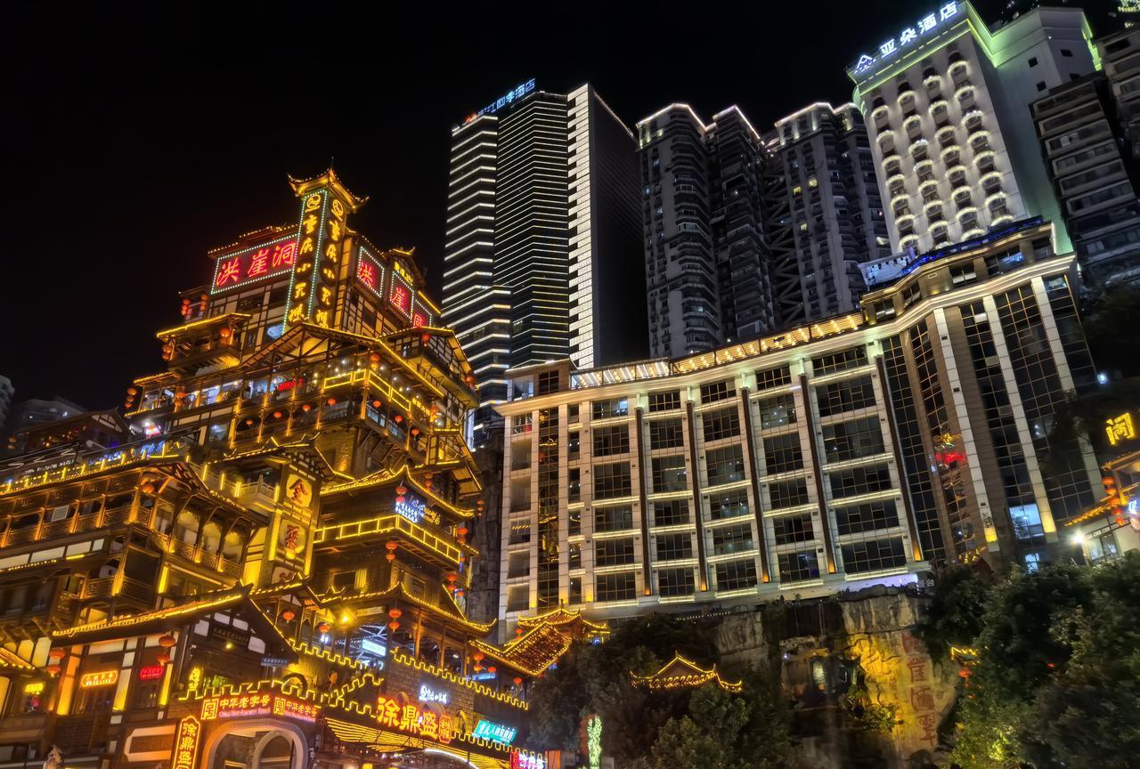 拍摄角度不一样的重庆市4A级景区洪崖洞的夜景写真: