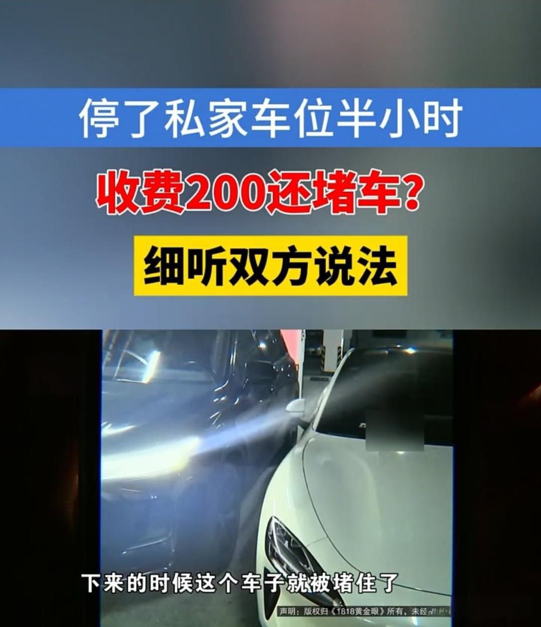 杭州,一名女子把车停在他人车位上,结果被对方用车堵住,还被收取了200元。她对此