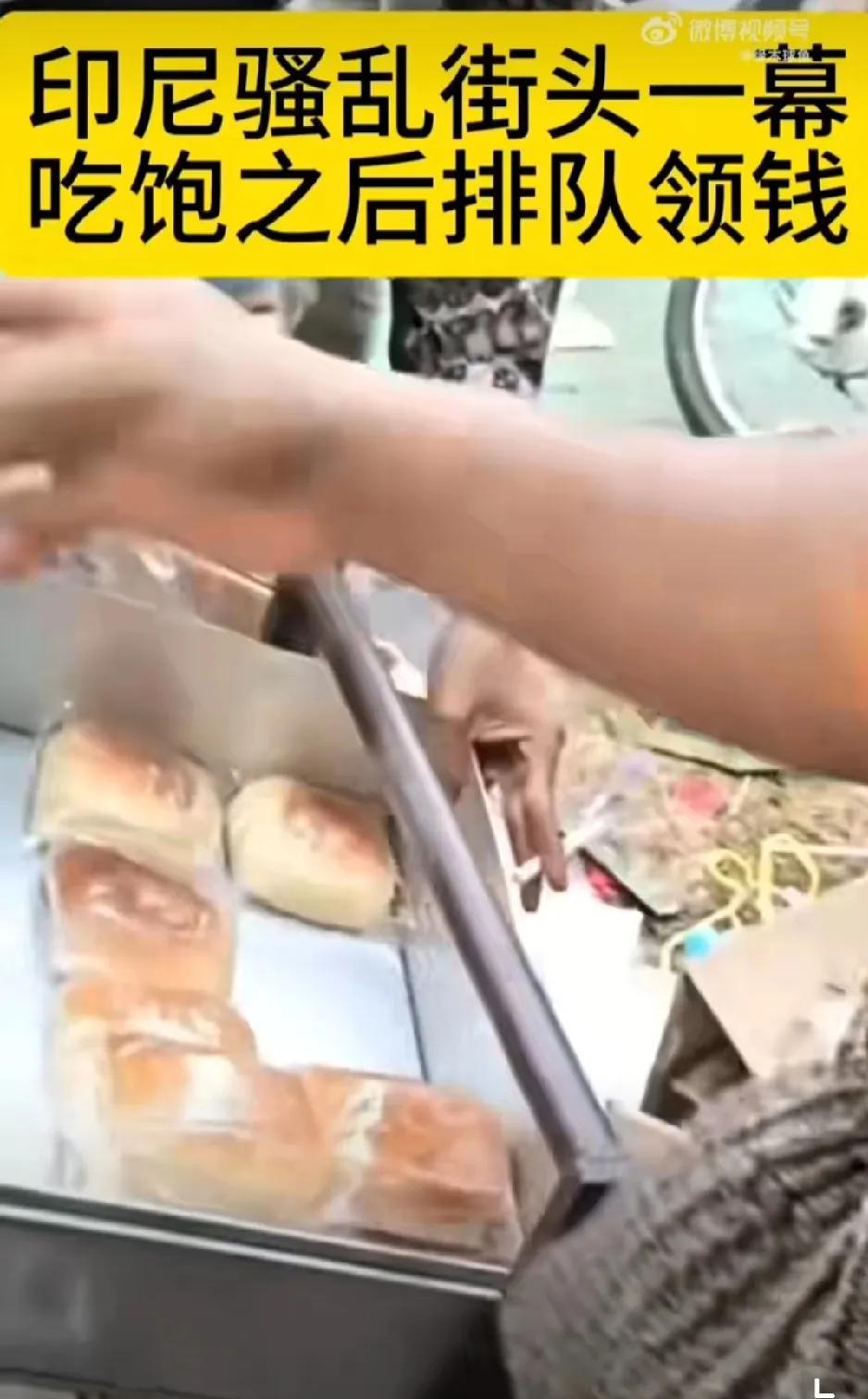 印尼骚乱:管吃管喝还发钱。 凡是上街参加活动的,不论是谁,到了吃饭时间,自然会有人运来盒饭、面包以及瓶装饮用水对每个人免费发放。饭食虽然简单,但是管饱。 一天活动结束之后,或者某场活动结束之后,又会有人抱着成箱的现金,参加的活动的人排队领钱。 怎么样,不用上班,不用上学,只要上街去,就算什么都捞不到,至少也可以混个肚儿圆,多少还有点零用钱。怪不得这么多人不管三七二十一,哪里有游行就往哪里去,至于为什么去参加游行,这个问题并不重要。