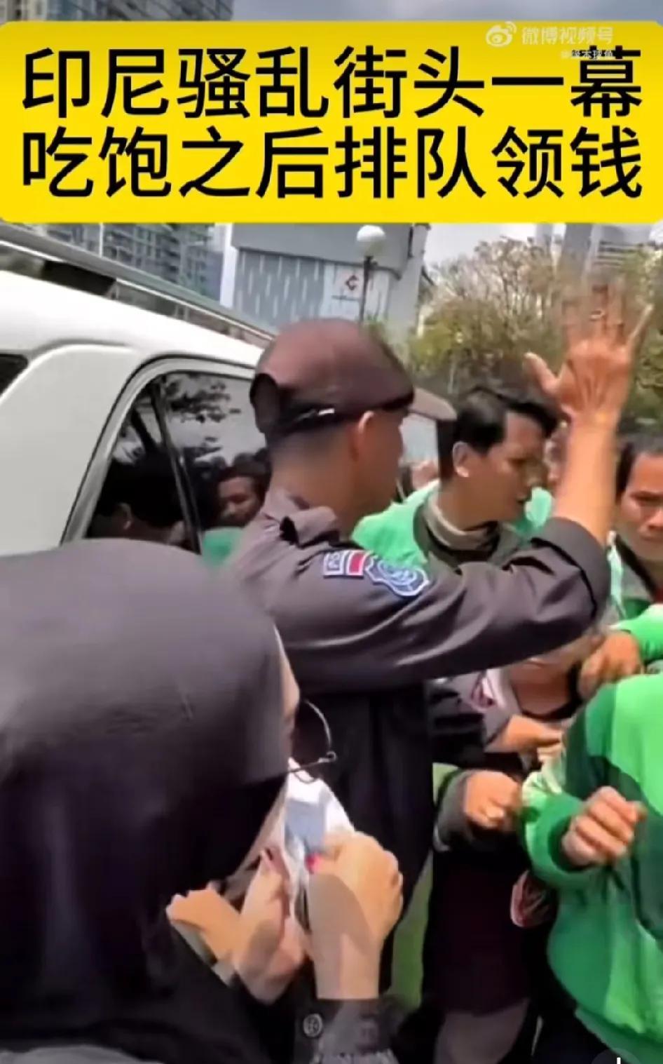 印尼骚乱:管吃管喝还发钱。 凡是上街参加活动的,不论是谁,到了吃饭时间,自然会有