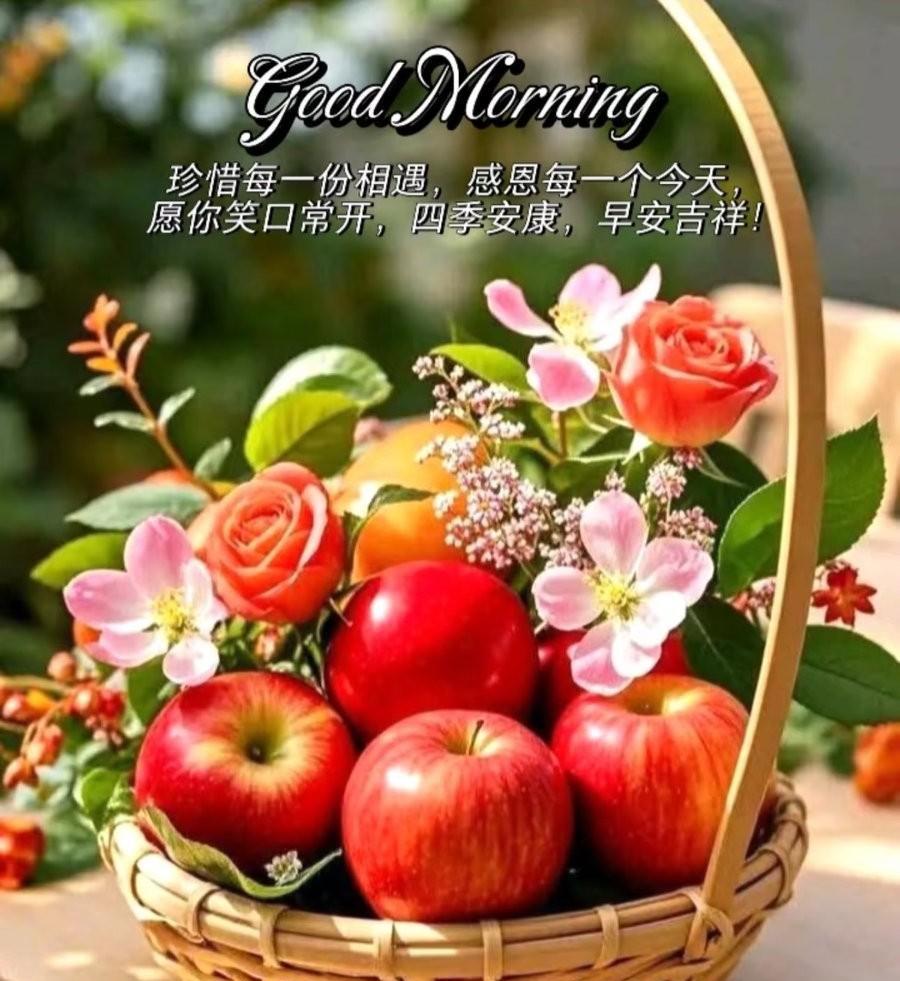 [玫瑰]早上好[玫瑰] 新的一天,祝您心情愉悦, 事事顺心,岁月静好, 健康与您常相伴! [太阳][玫瑰][心][微风] 生活一半助你,一半渡你。 尽你所能,敬你不能,心态从容,万事皆美。 新周开启,万事顺遂~ 今生所遇,终身不忘。 一路同行,幸福安康。 一个招呼,有思,有念,有牵挂。 一声问候,有情,有义,有祝福。 ##秋日生活打卡季##